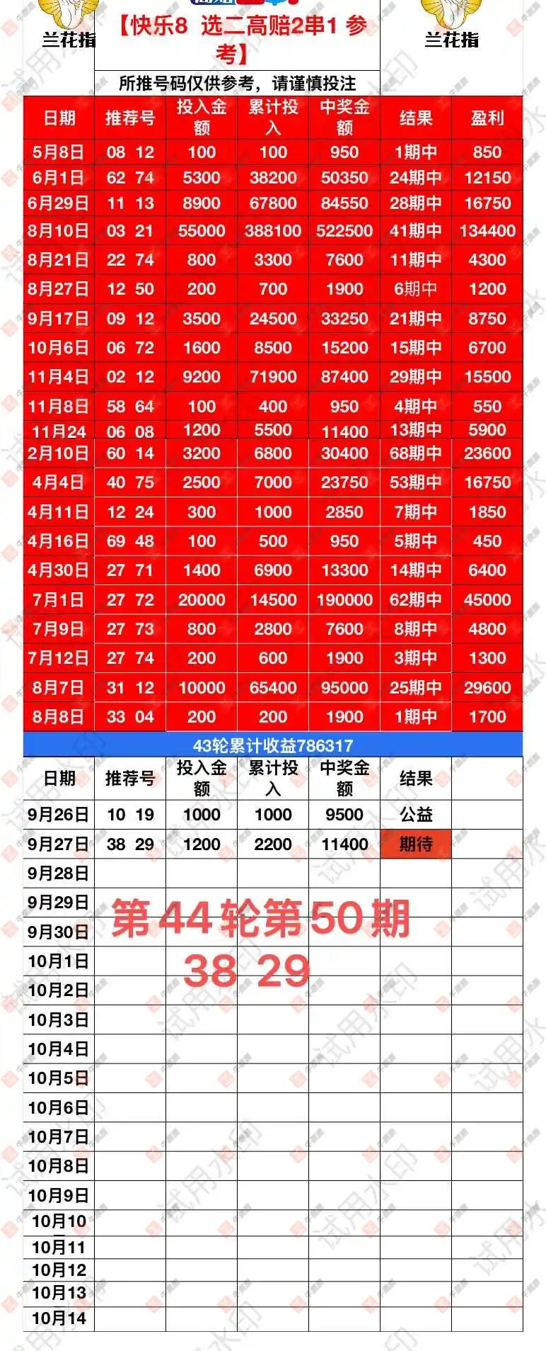 犀牛快8两码05 08计划第2天,兰花指两码38 29计划第50天。