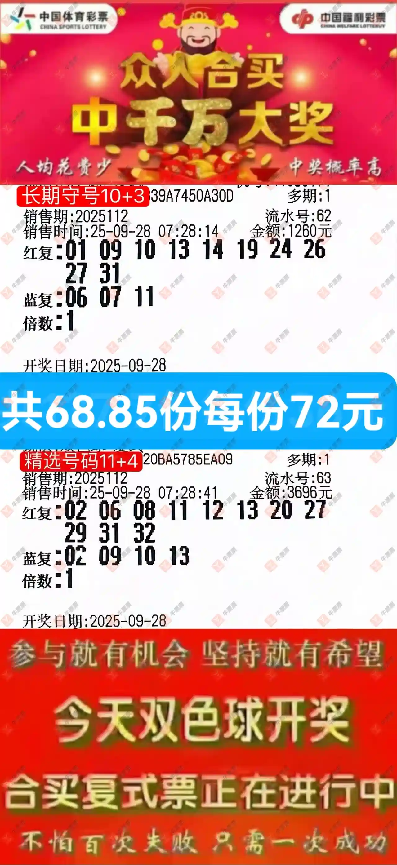 双色球多组实票参考,可参与