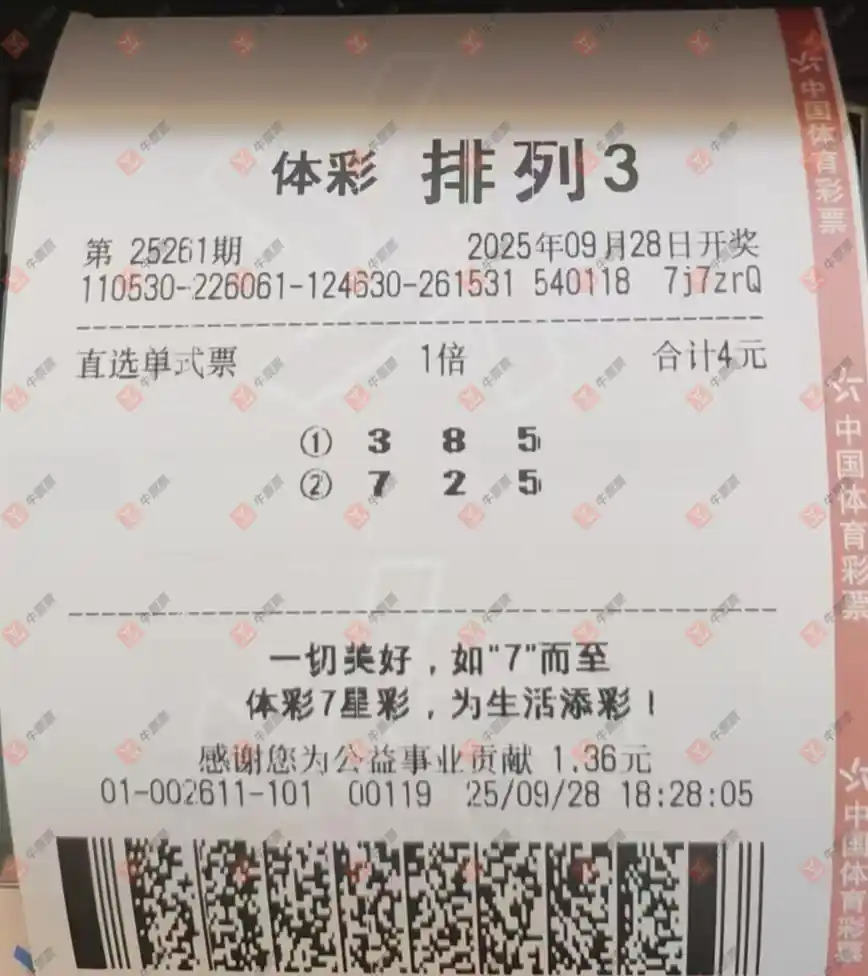 福彩3D 2025261期