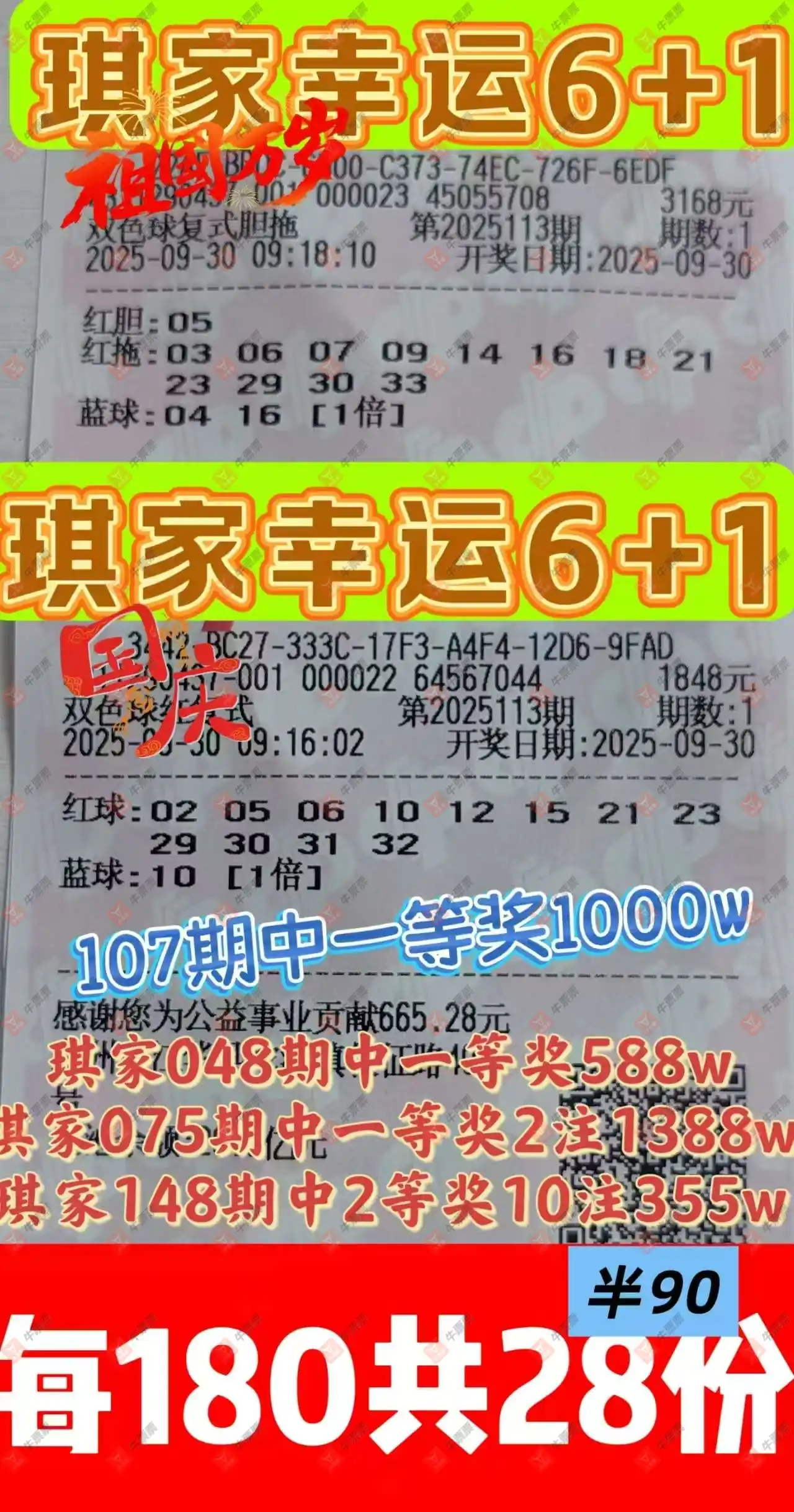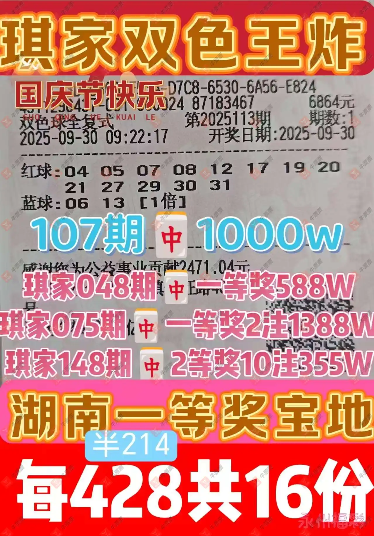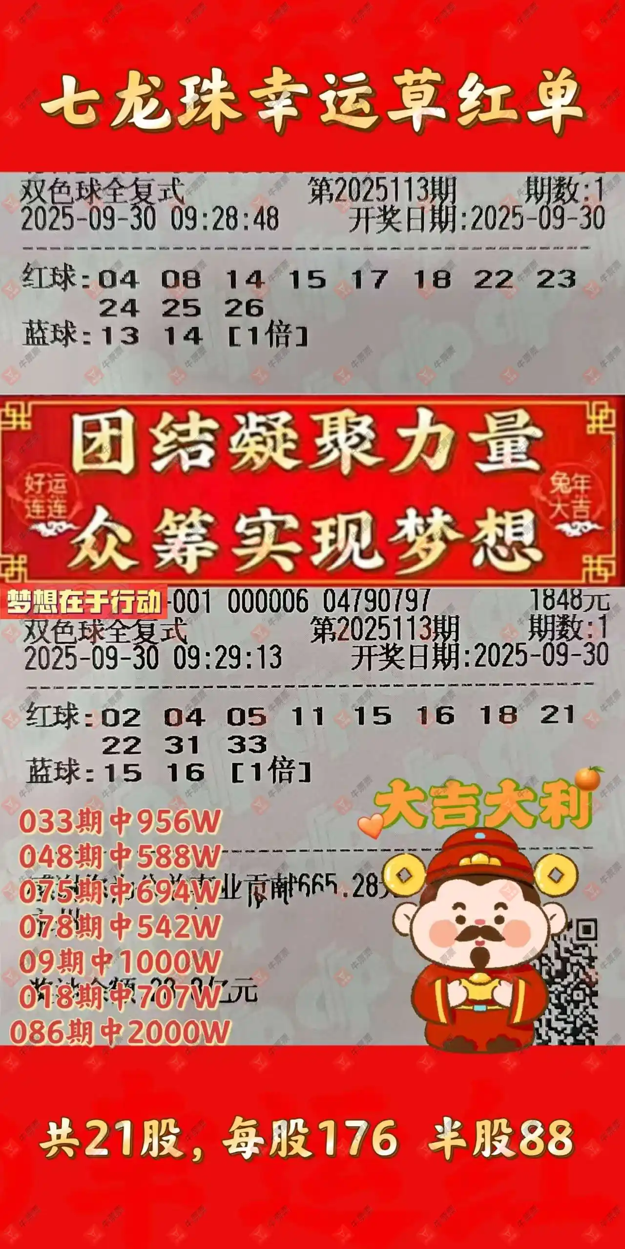 晒中113期双色球合买票