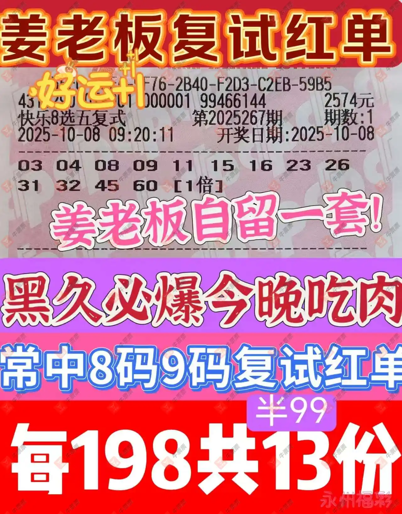 晒中267期快八合买票