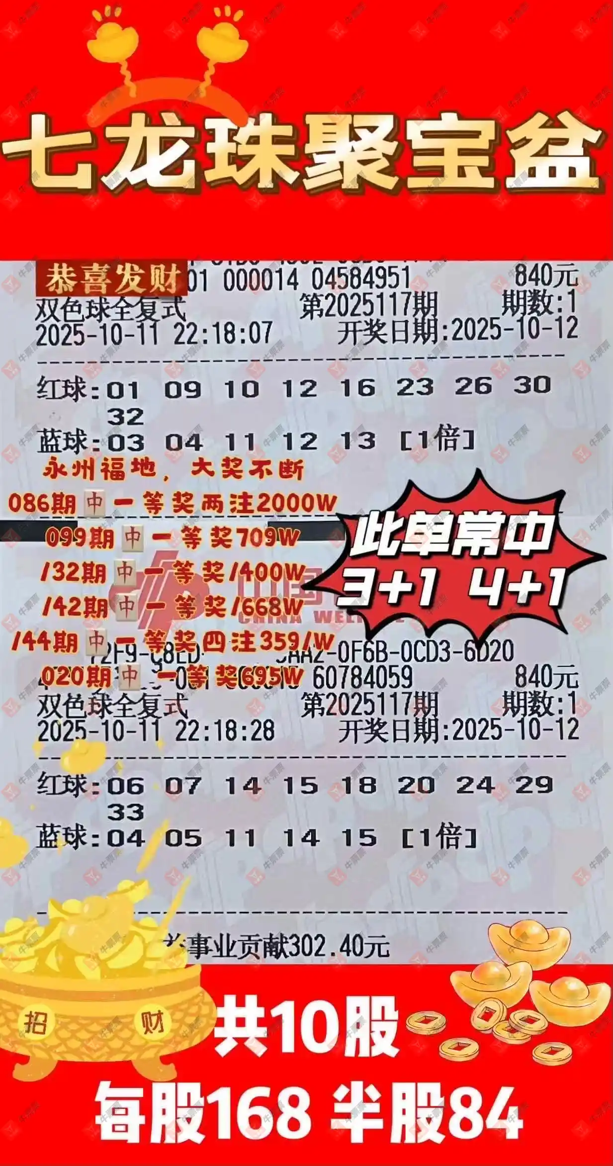 晒中117期双色球合买继续