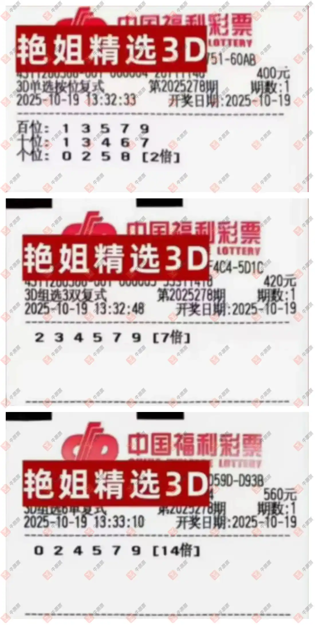 福彩3D 2025278期