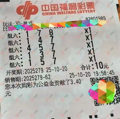 福彩3D 2025279期