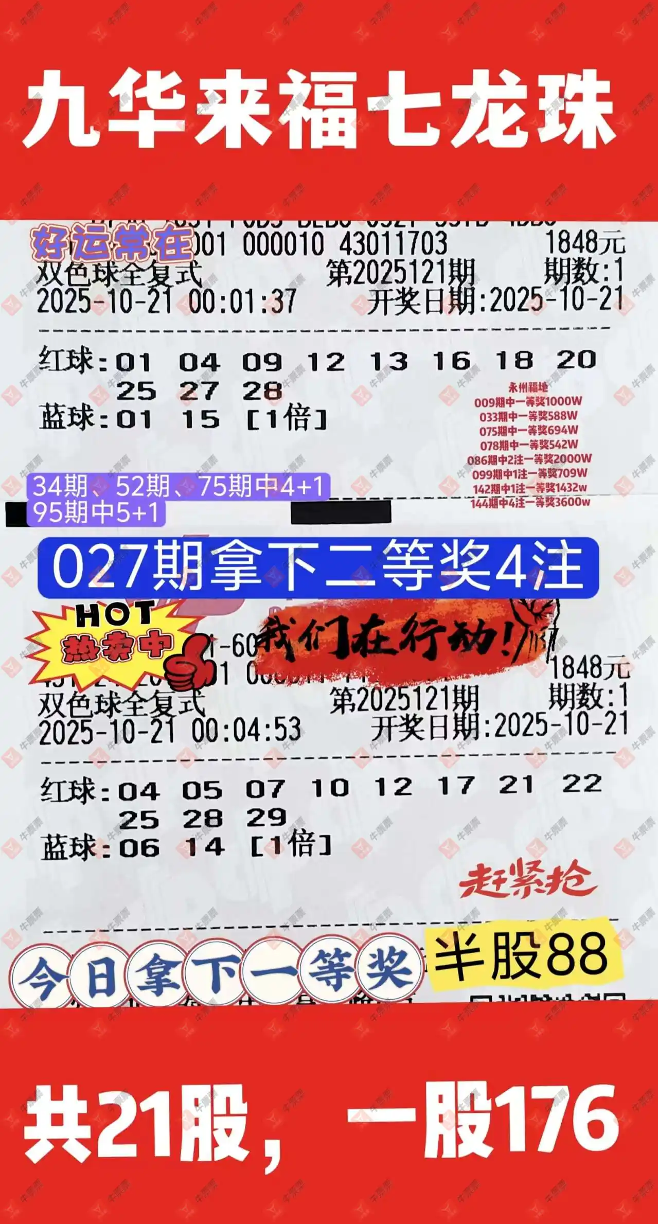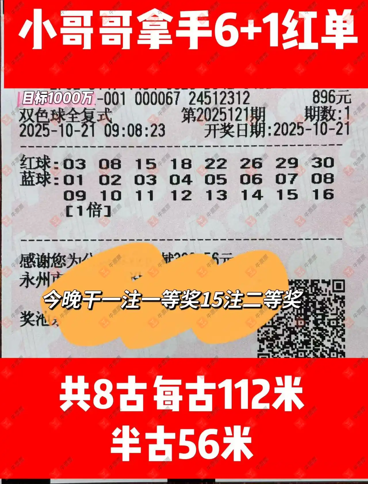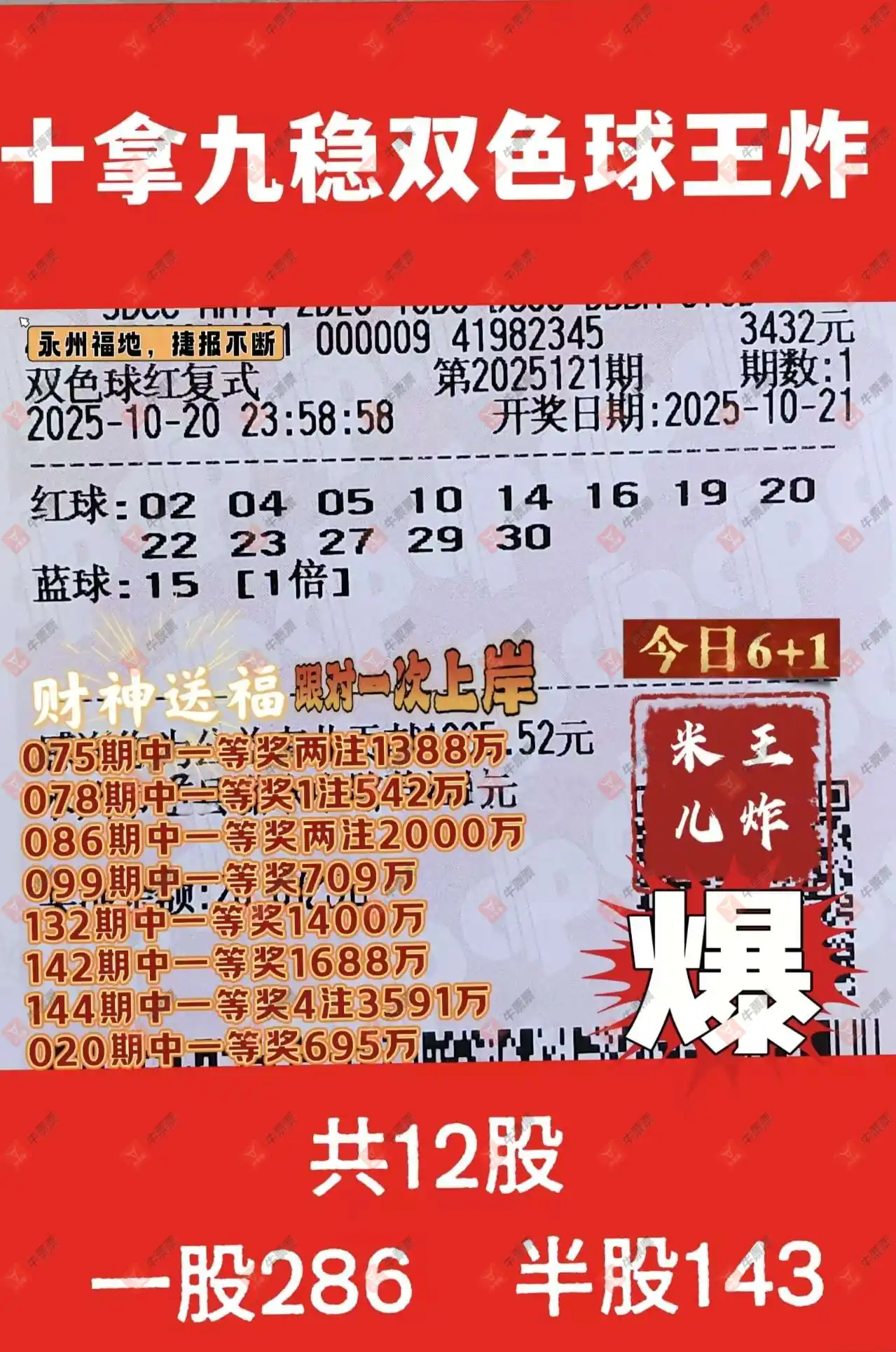 晒中121期双色球合买票