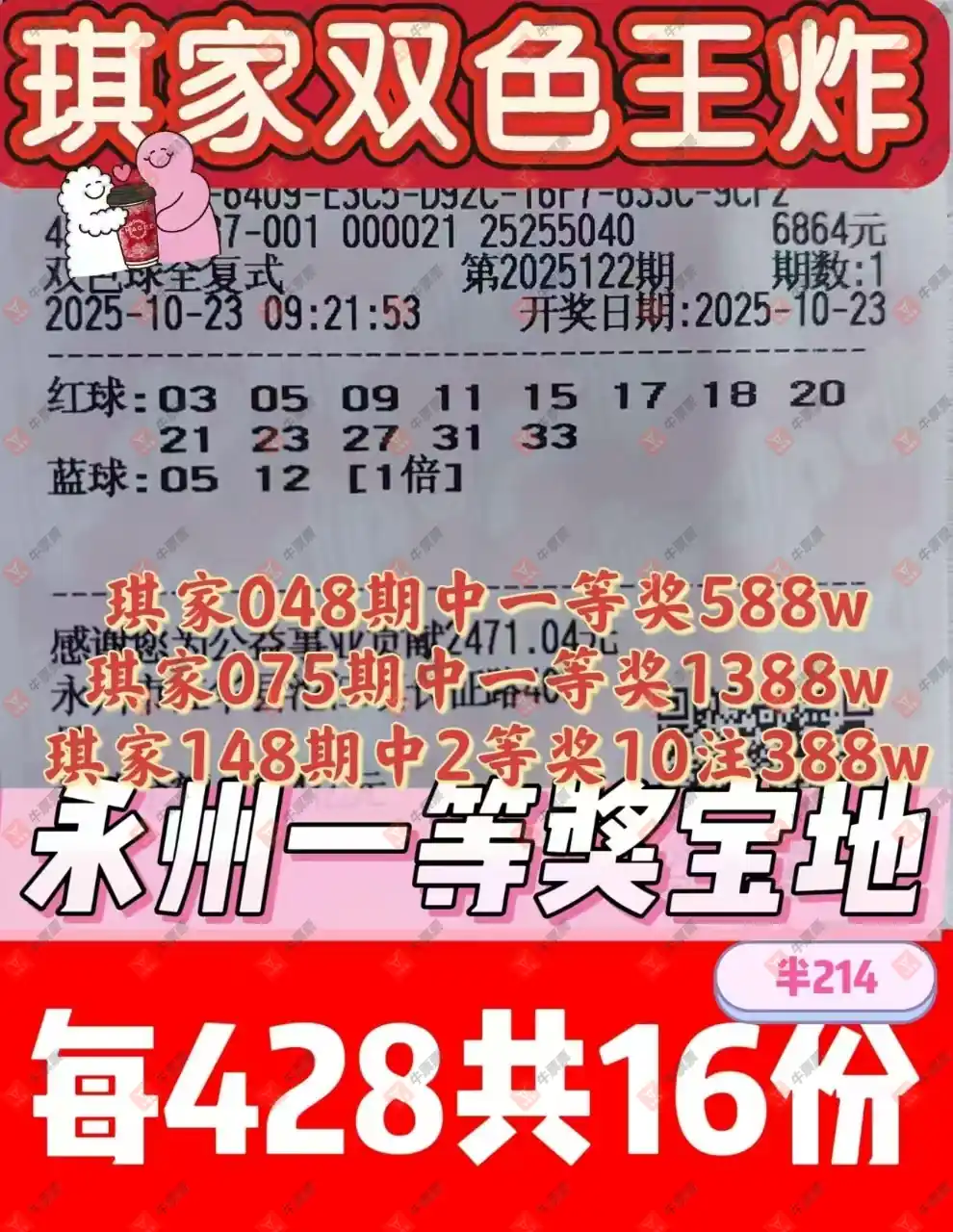 晒中122期双色球合买票参考