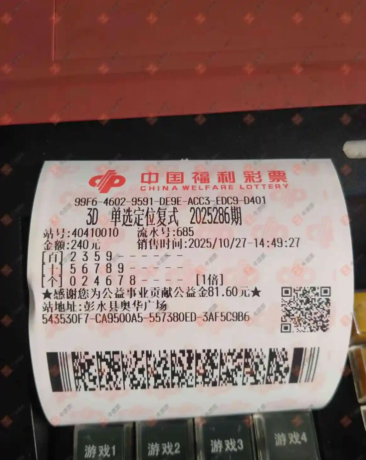 福彩3D 2025286期