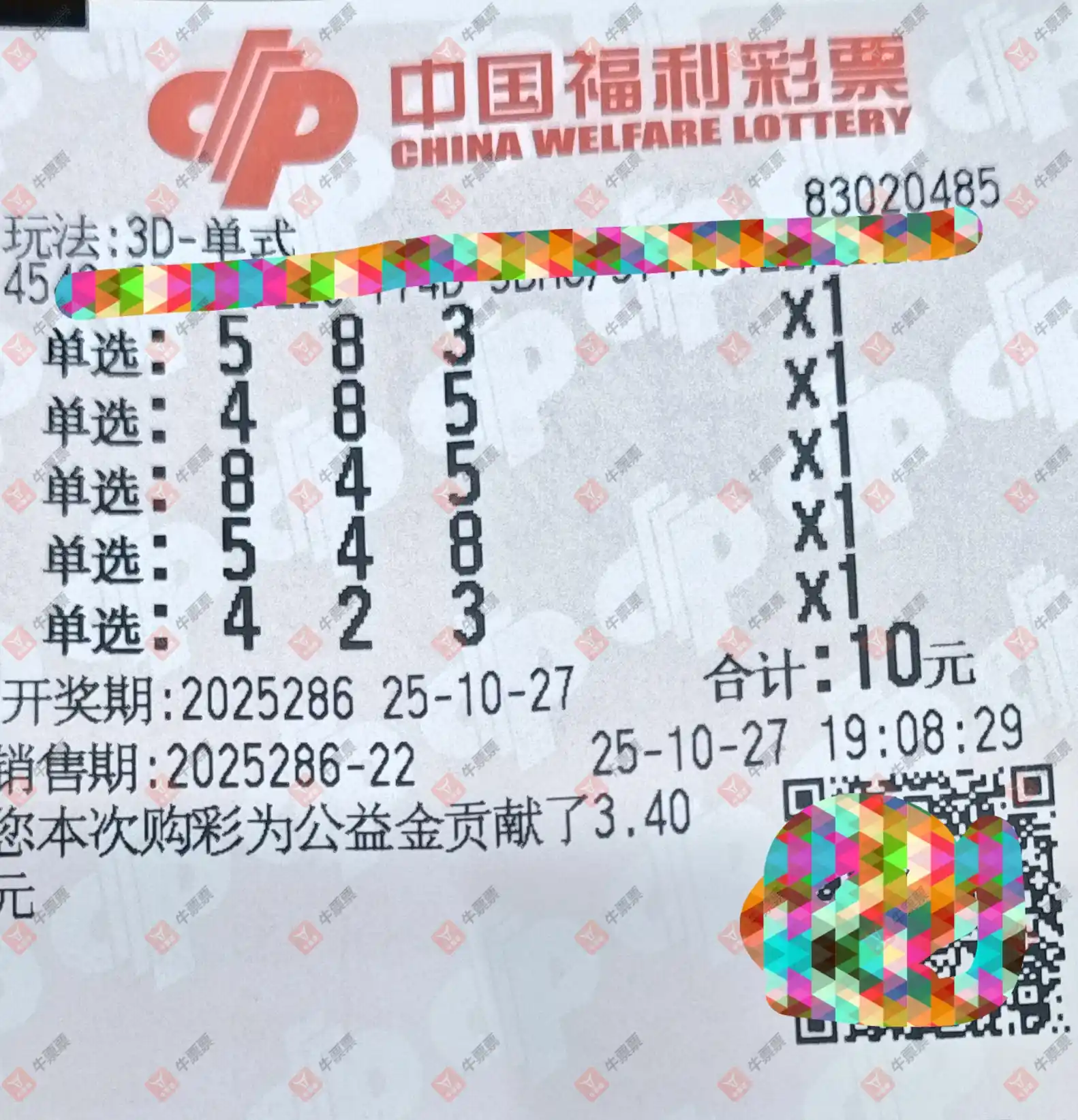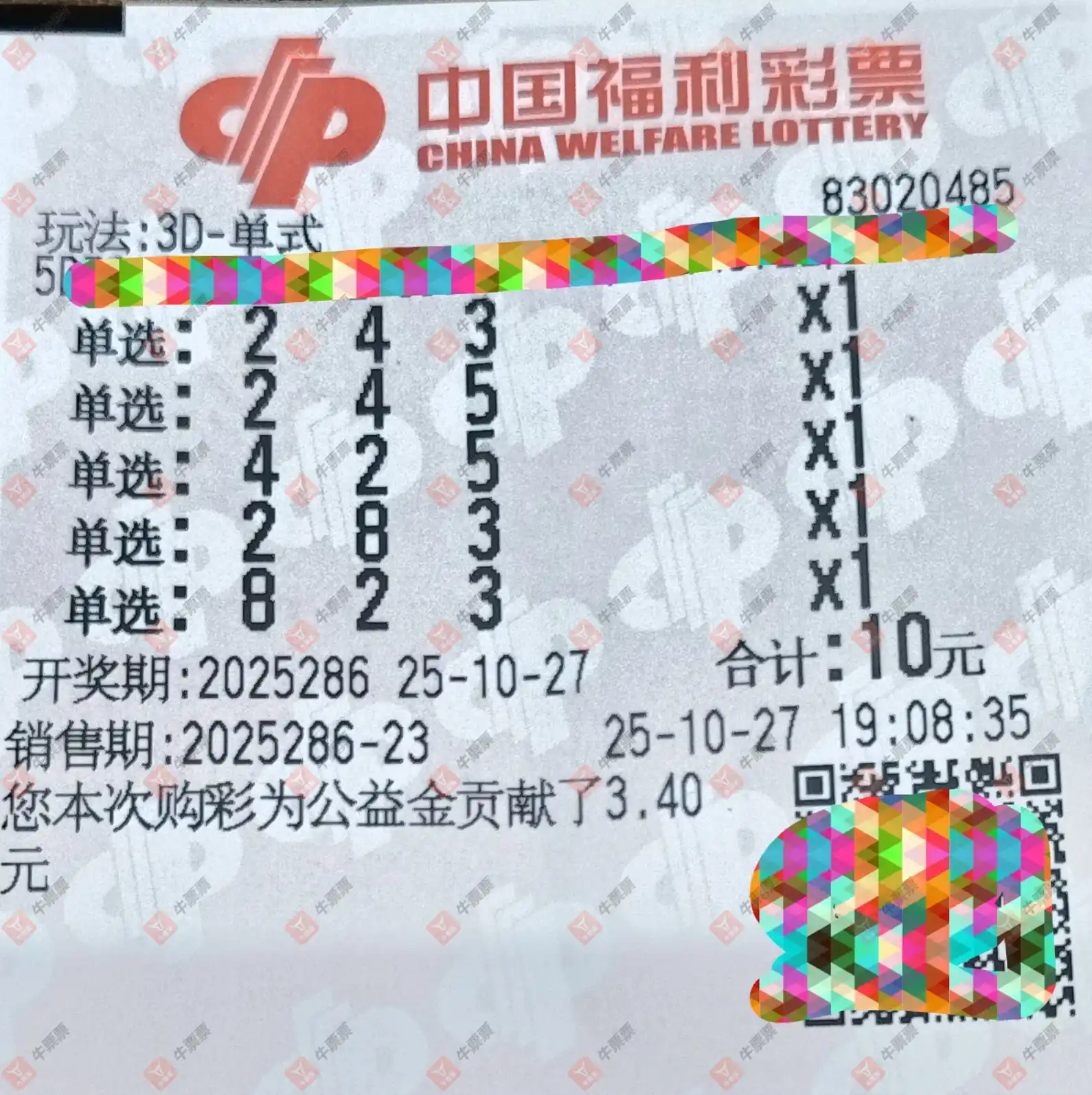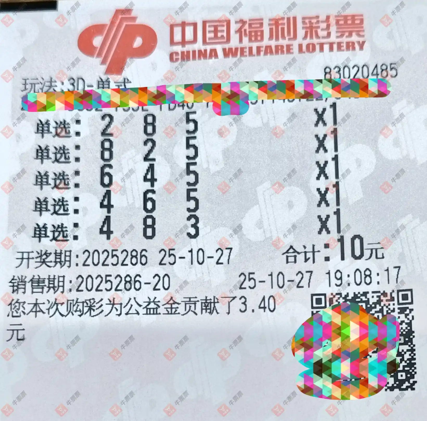 福彩3D 2025286期