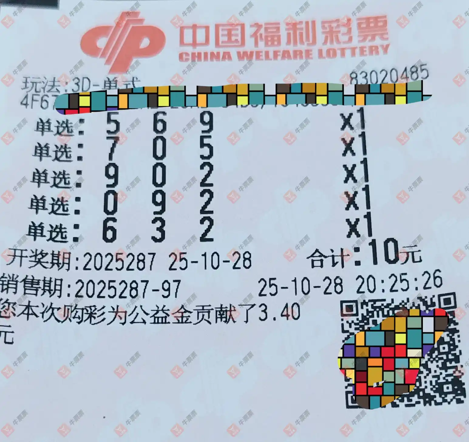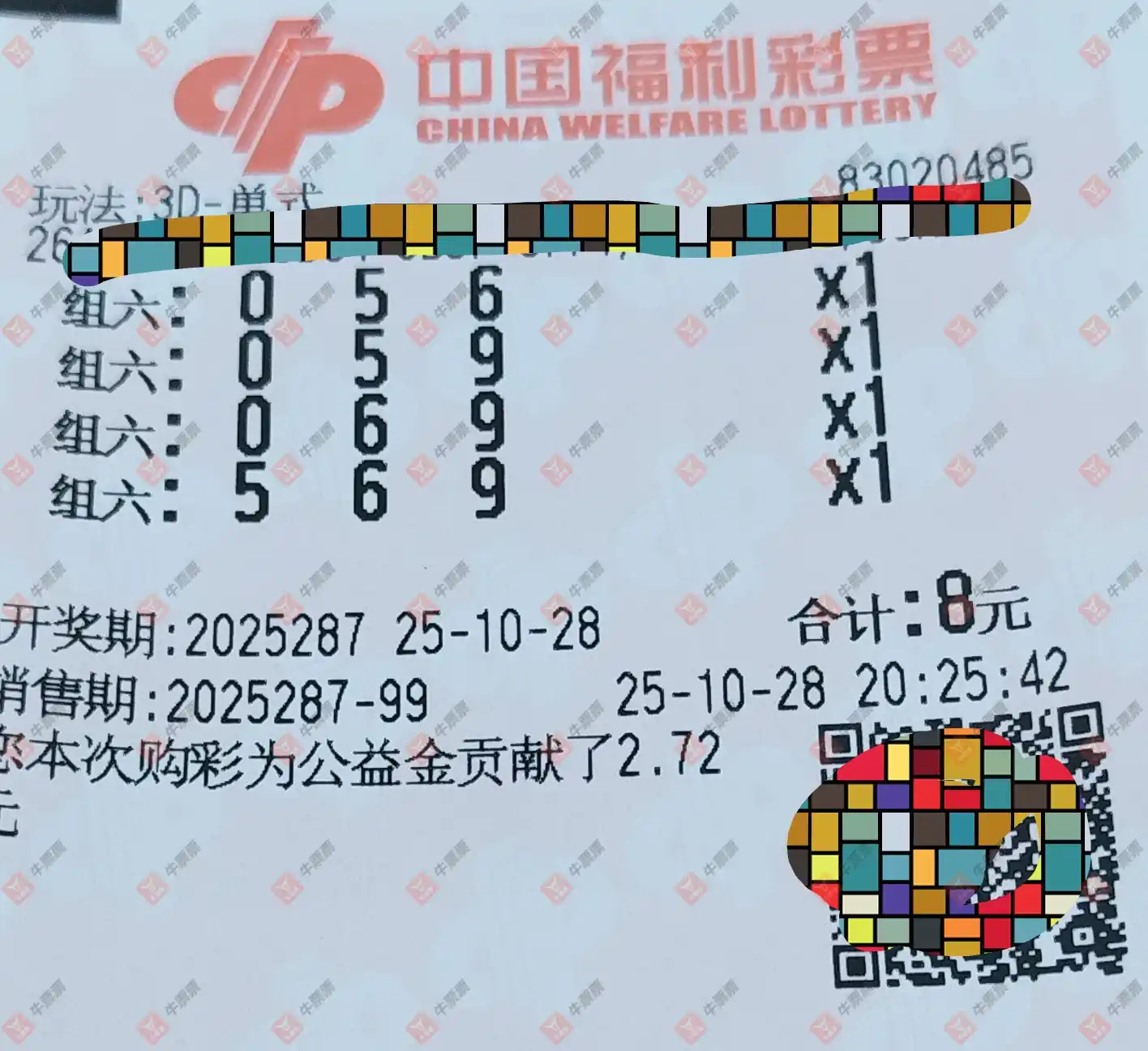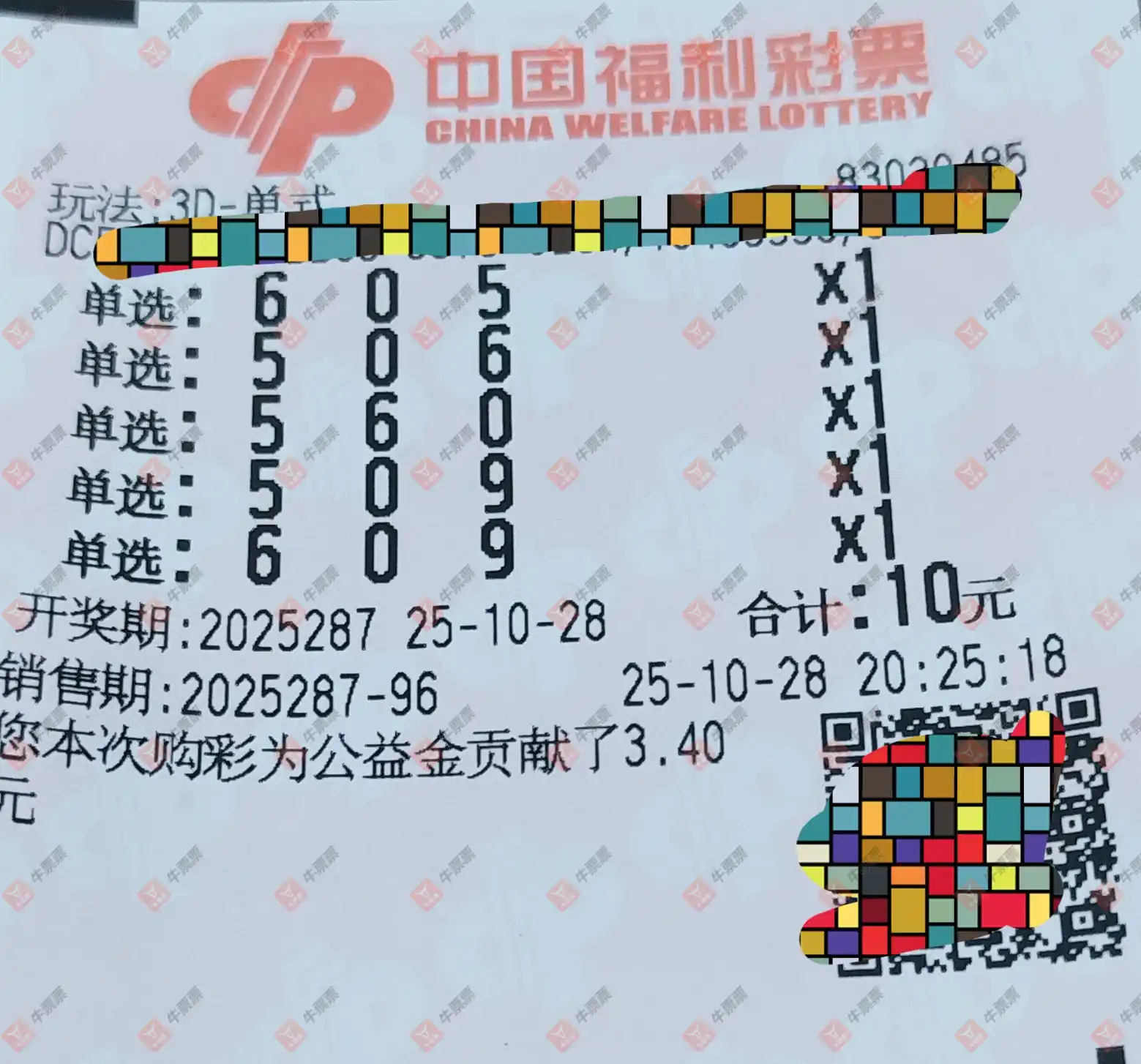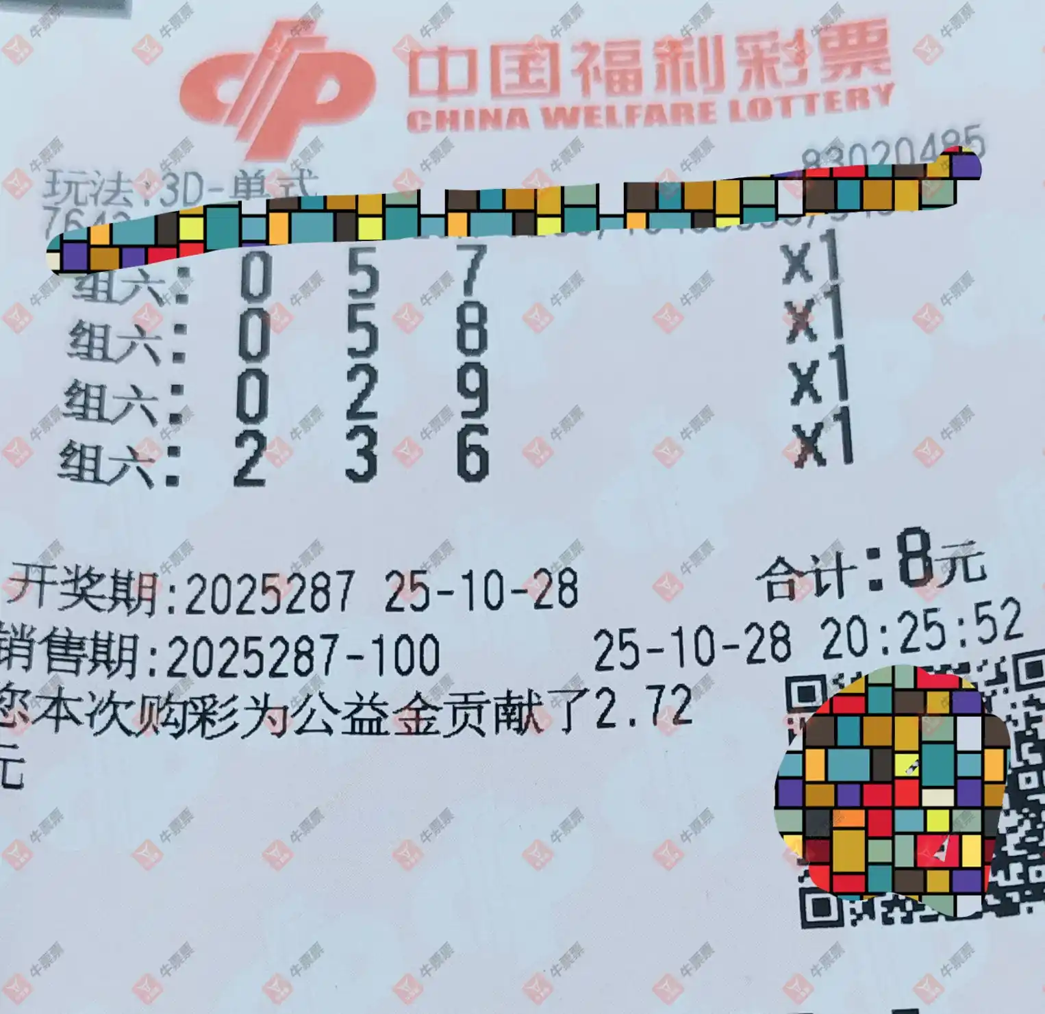 福彩3D 2025287期
