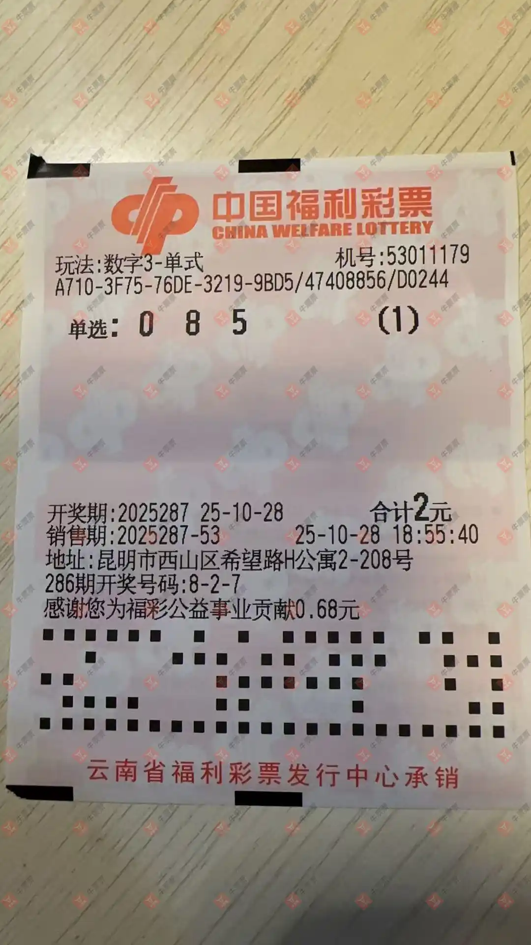 福彩3D 2025287期