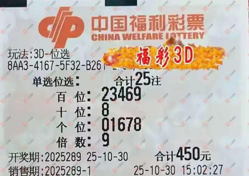 福彩3D 2025289期
