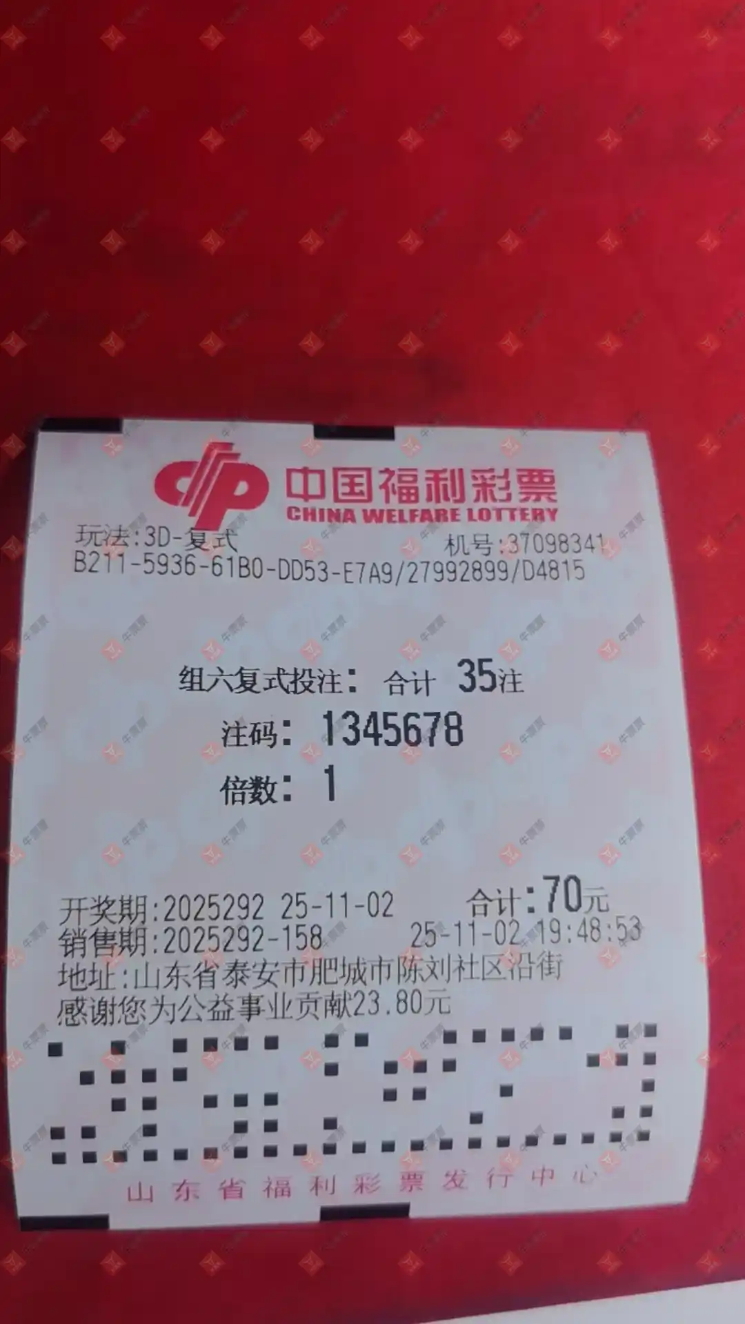 福彩3D 2025292期