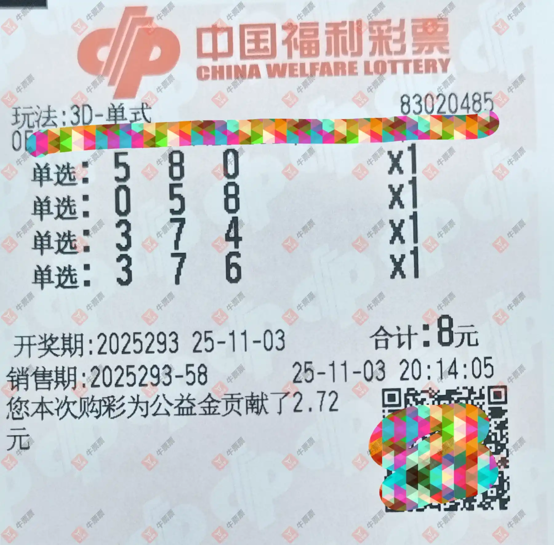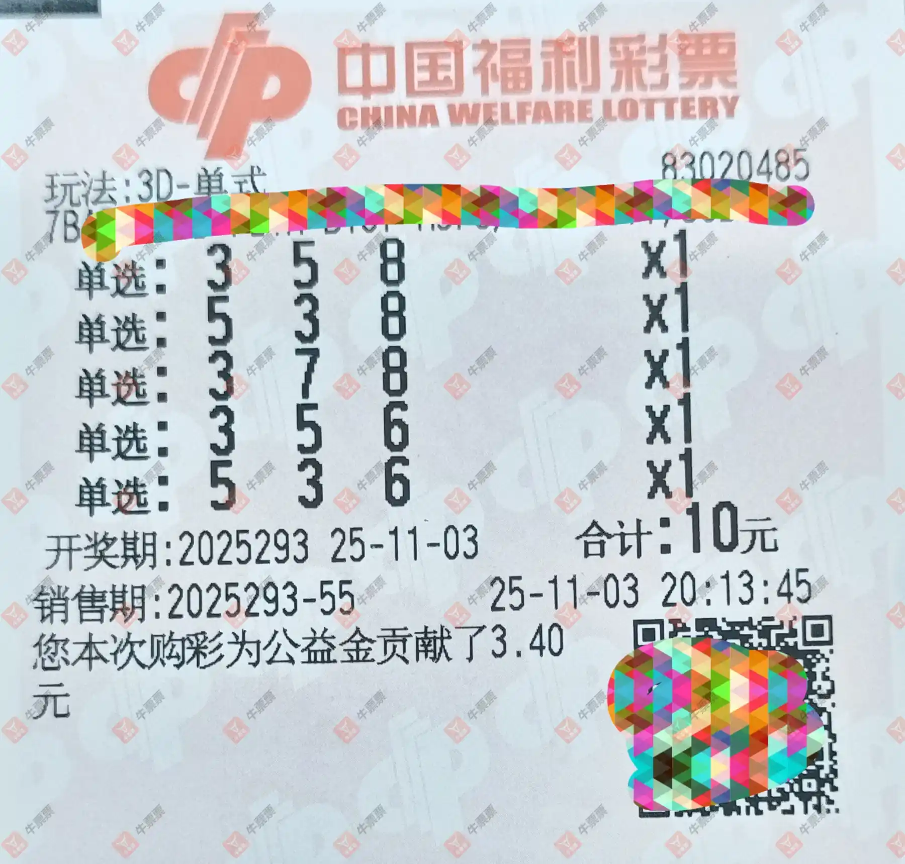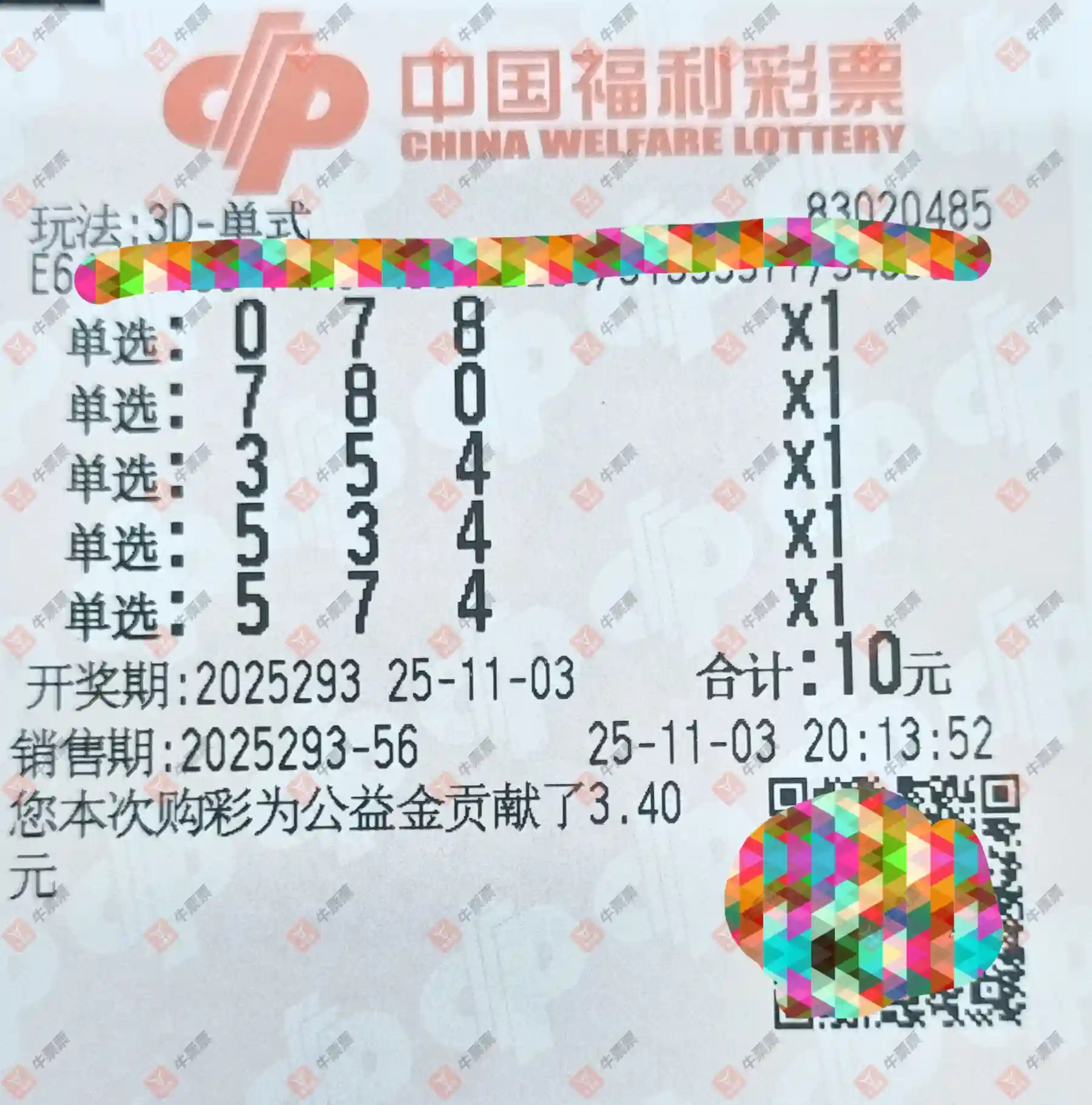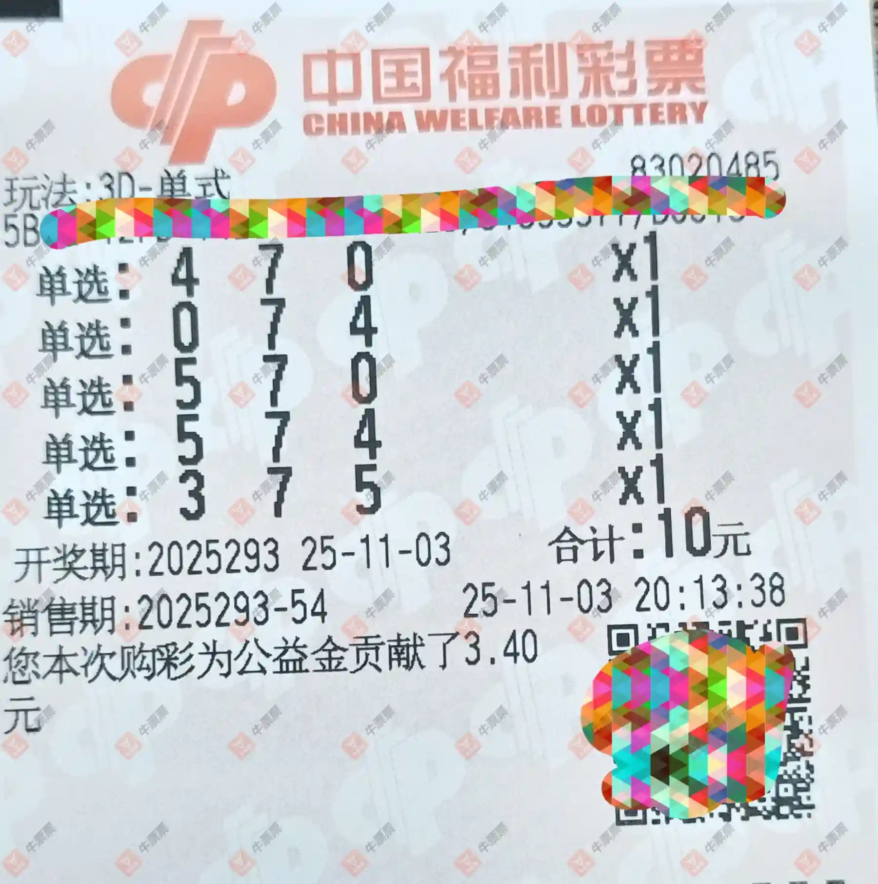 福彩3D 2025293期