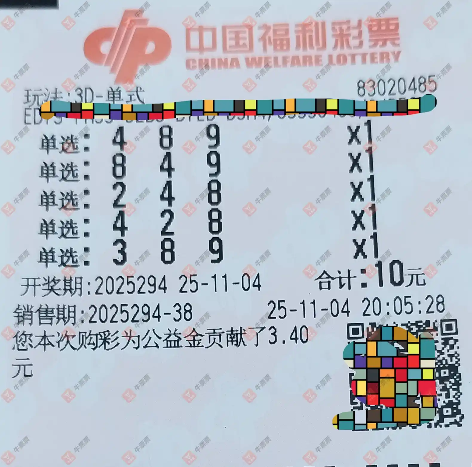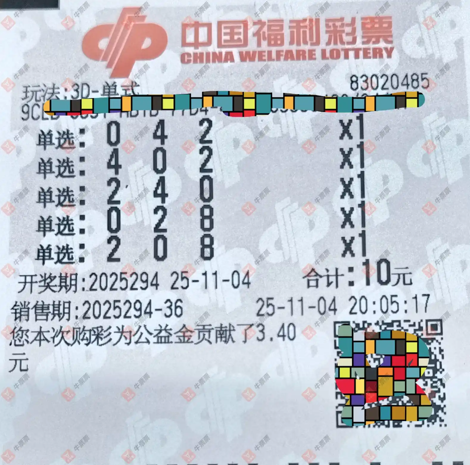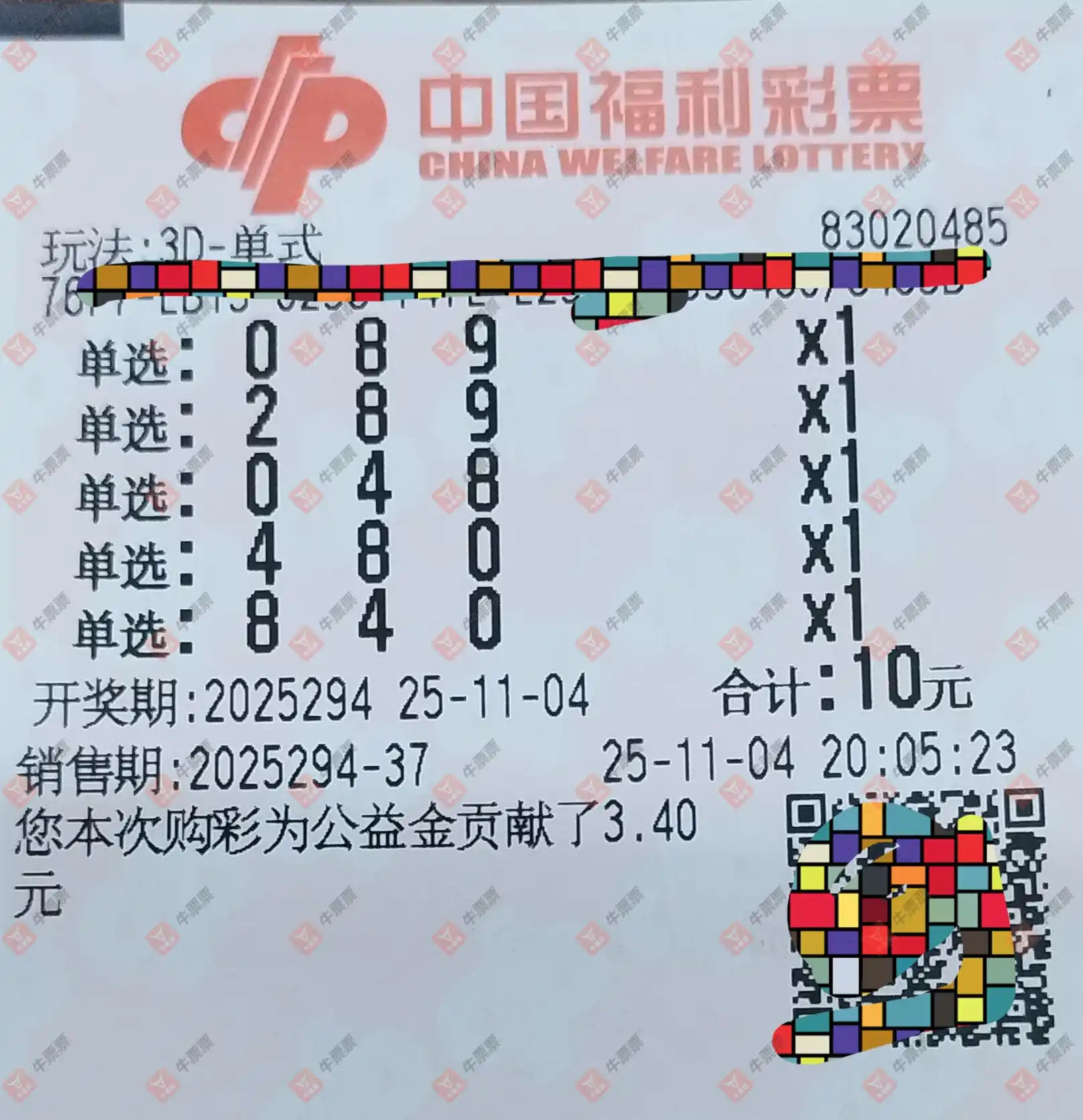 福彩3D 2025294期