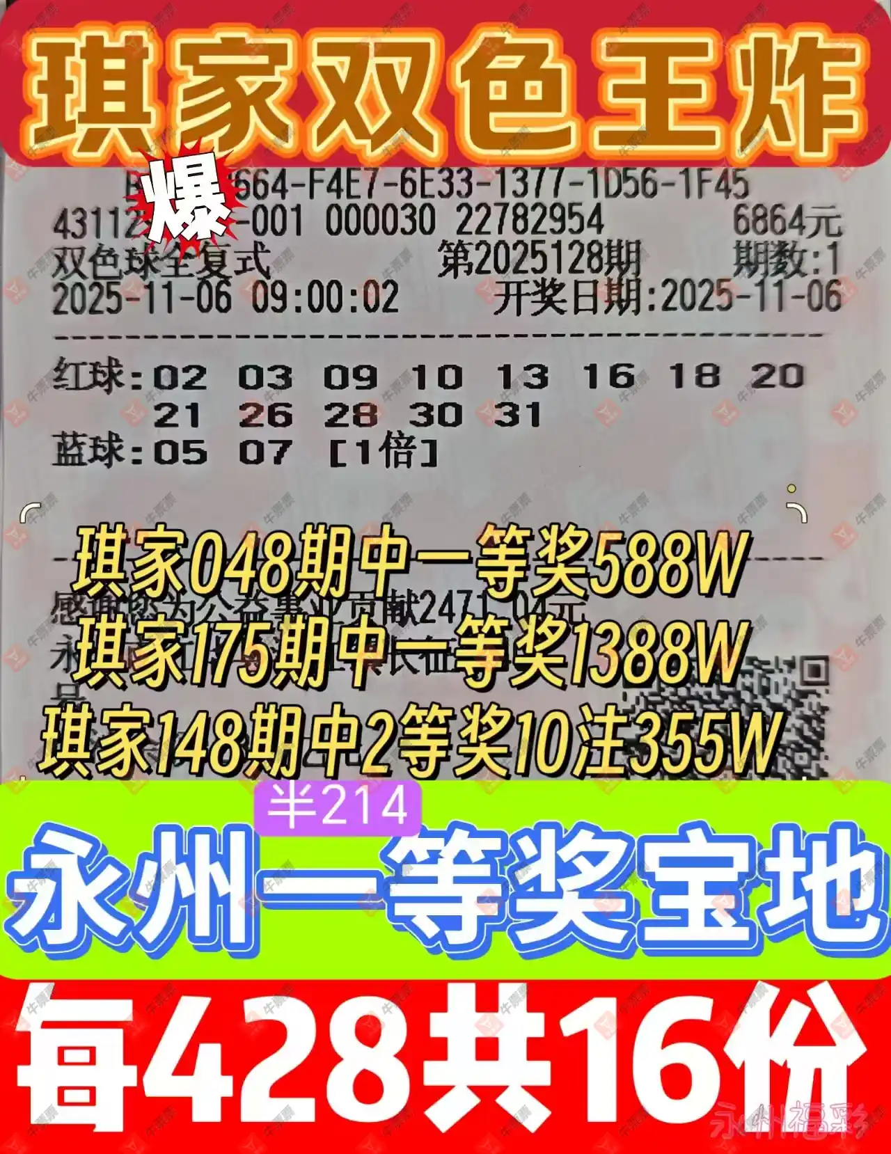 晒中128期双色球合买票参考