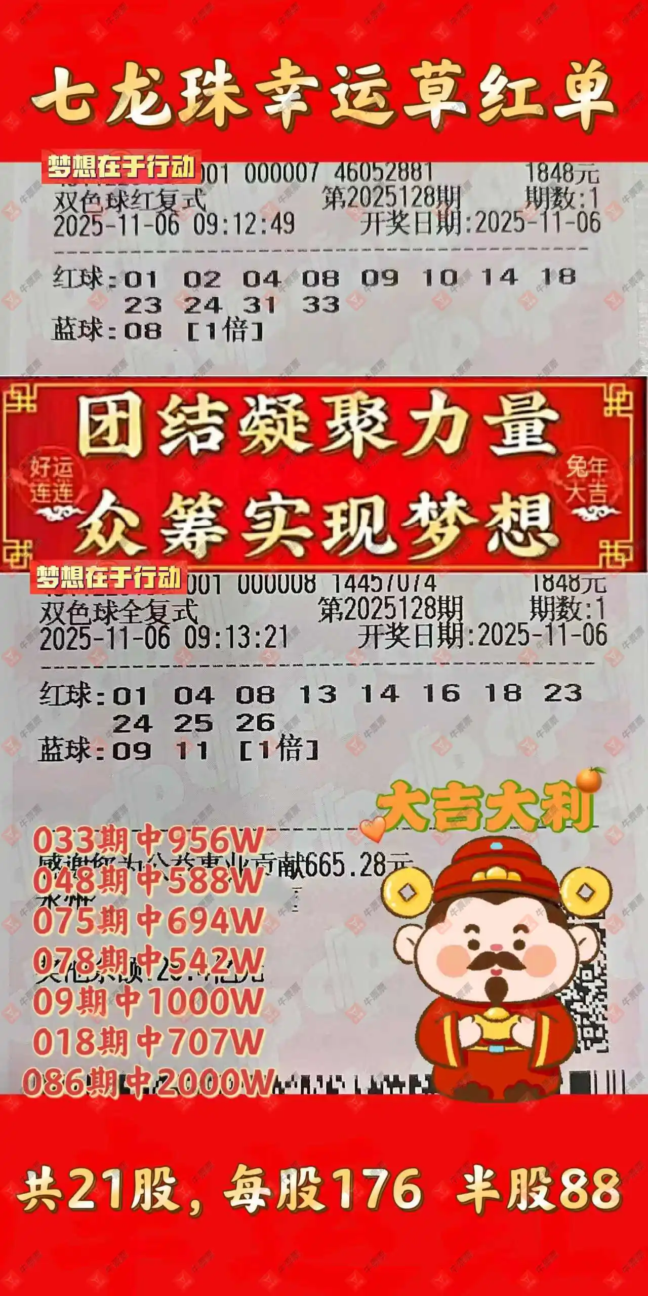 晒中128期双色球合买票