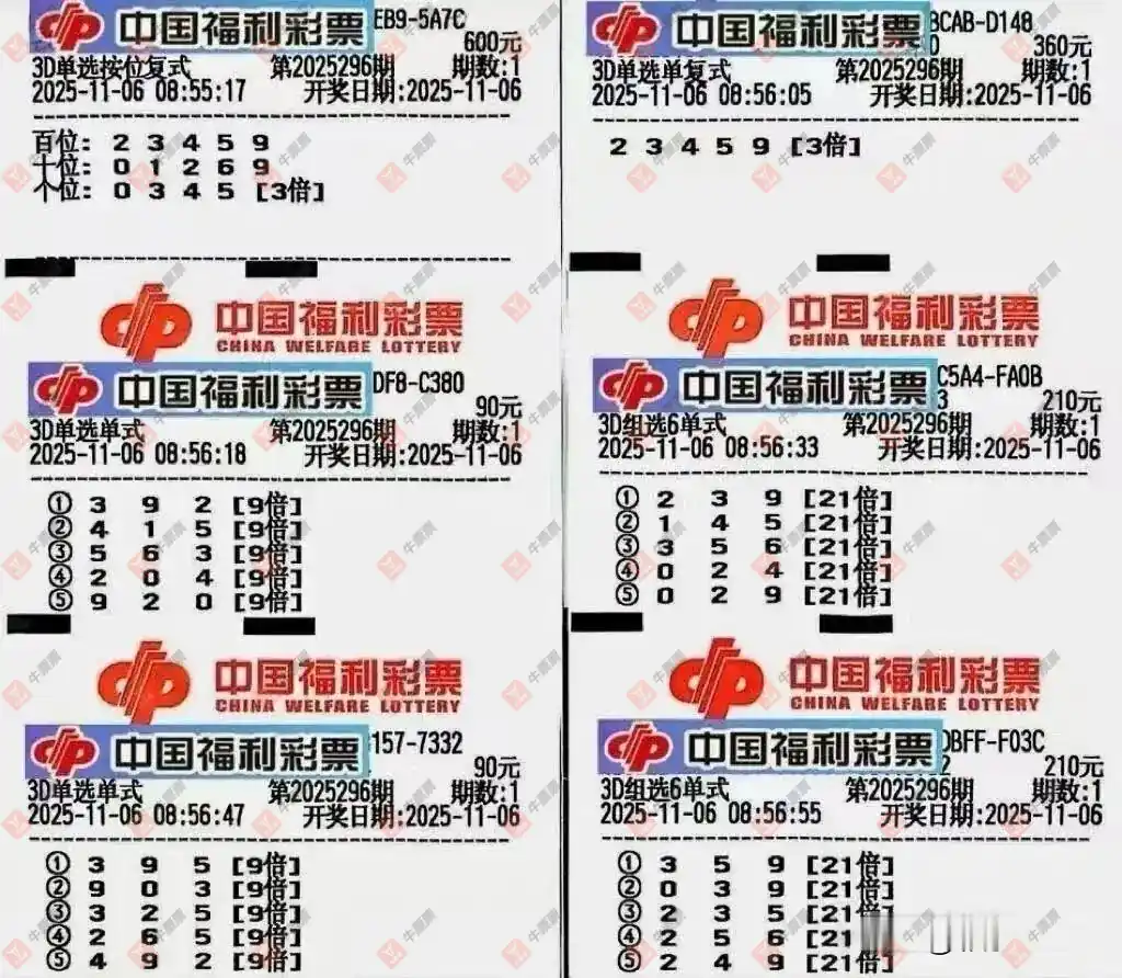福彩3D 2025296期