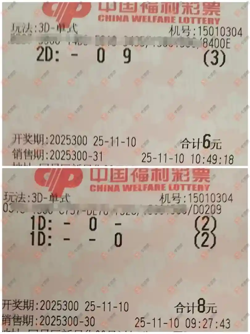 福彩3D 2025300期