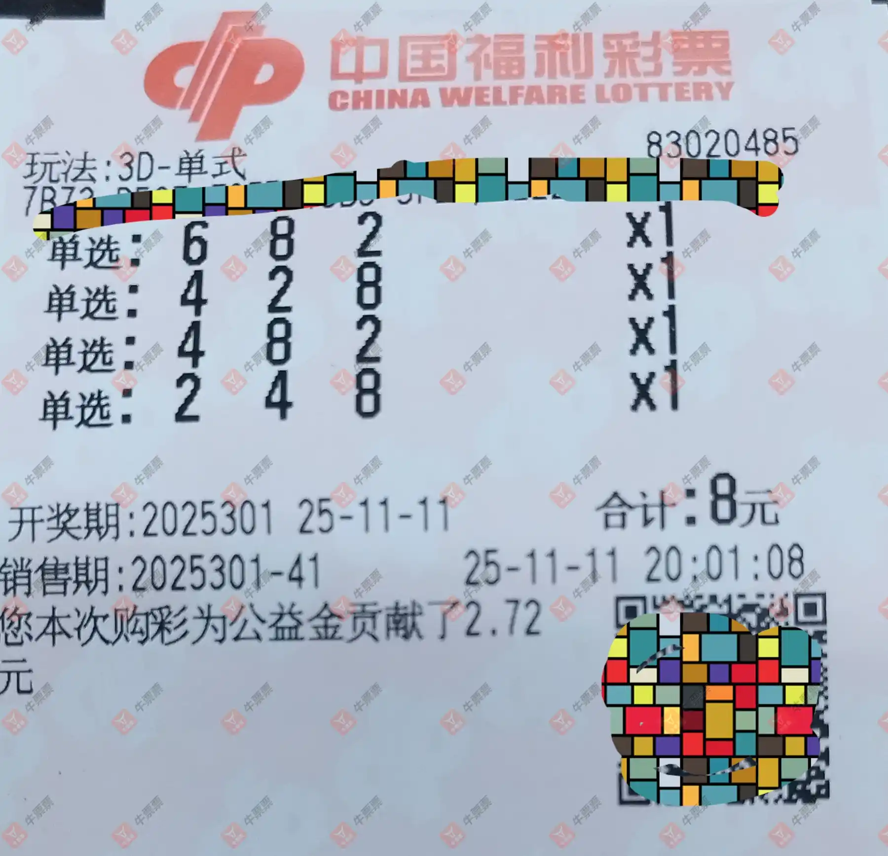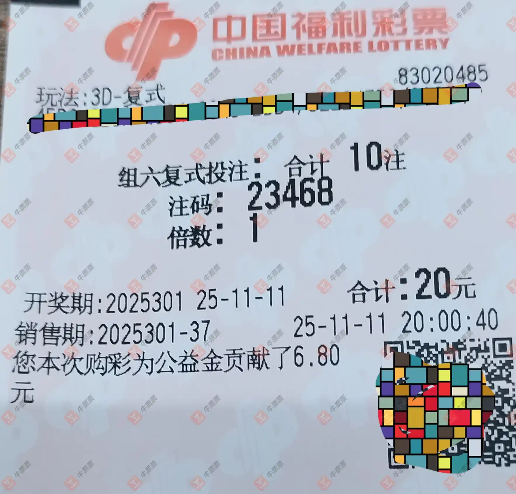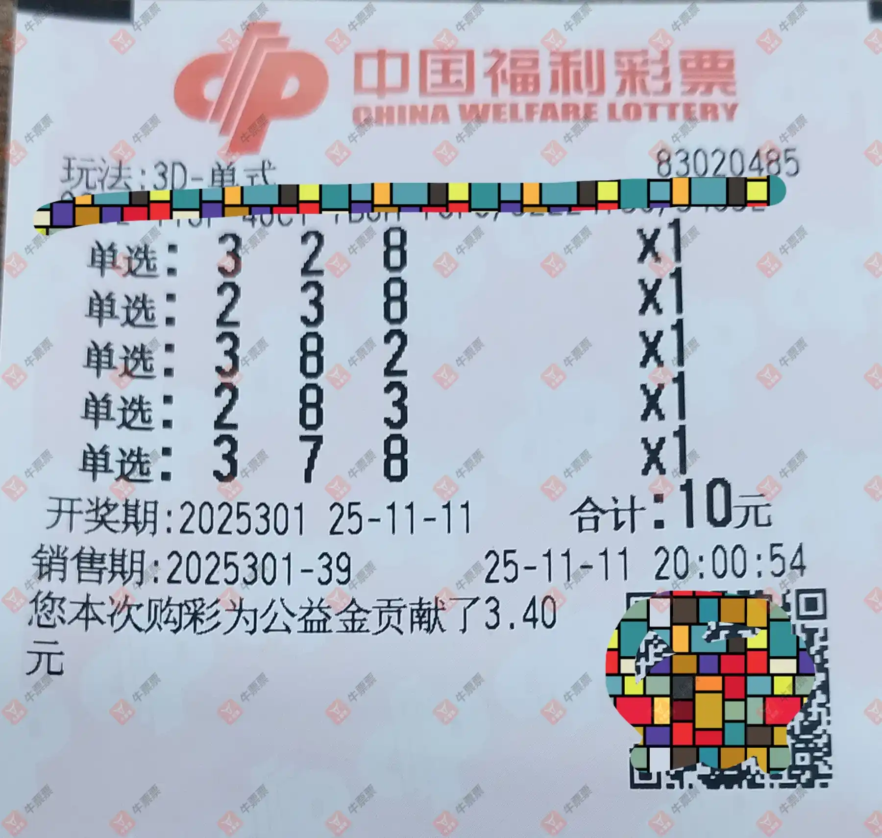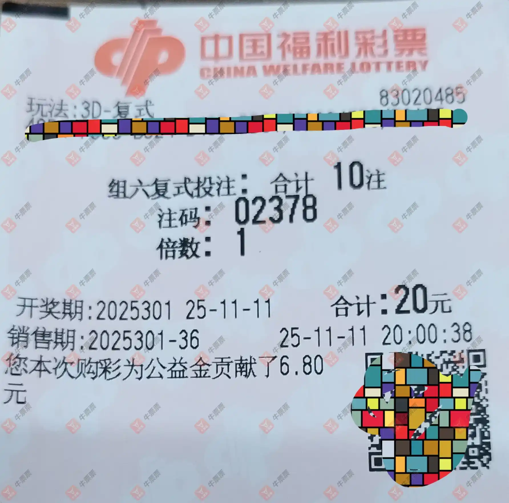 福彩3D 2025301期
