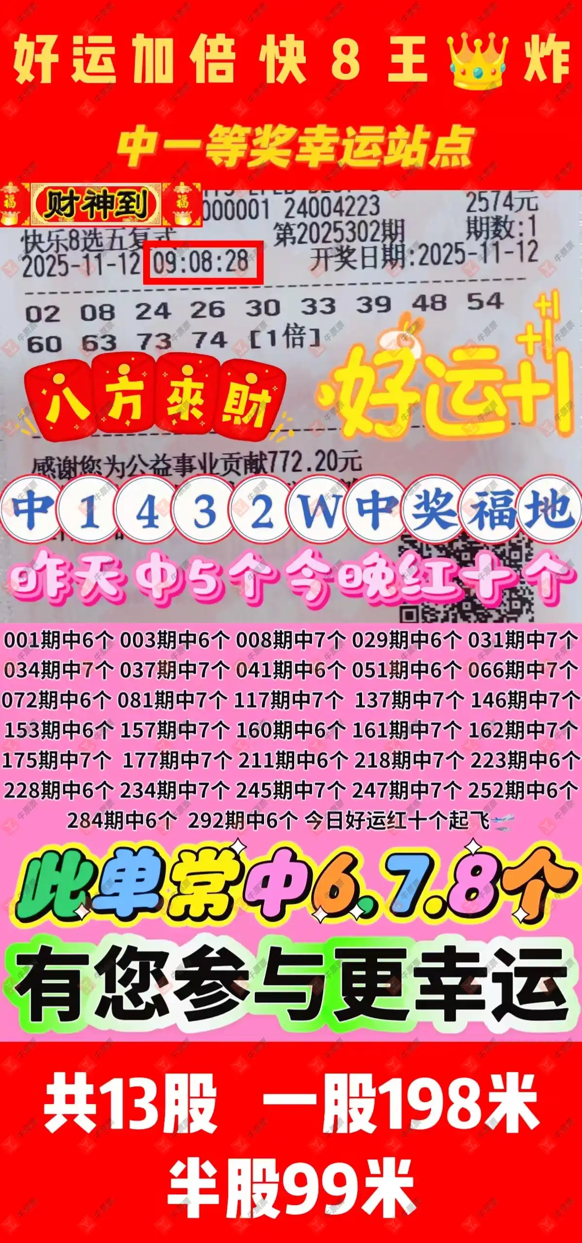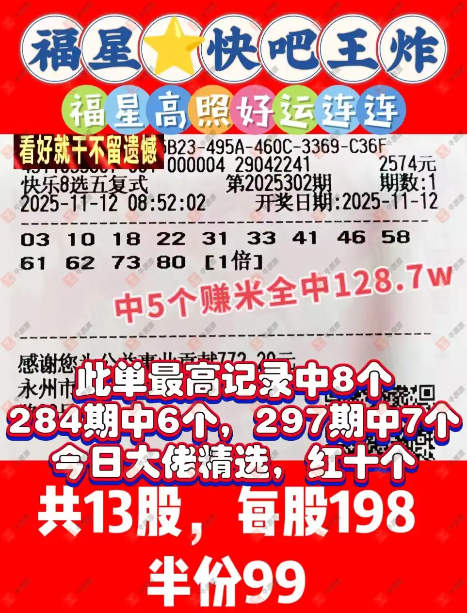 晒中302期快八合买票参考