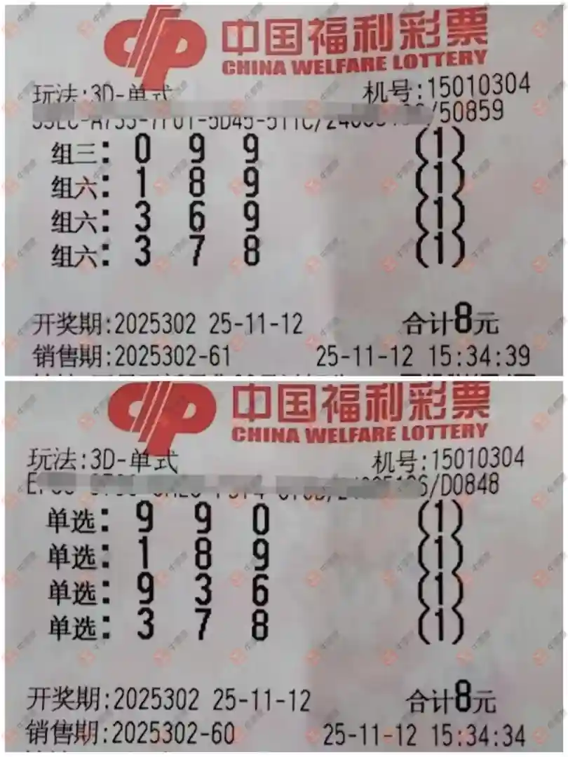 福彩3D 2025302期