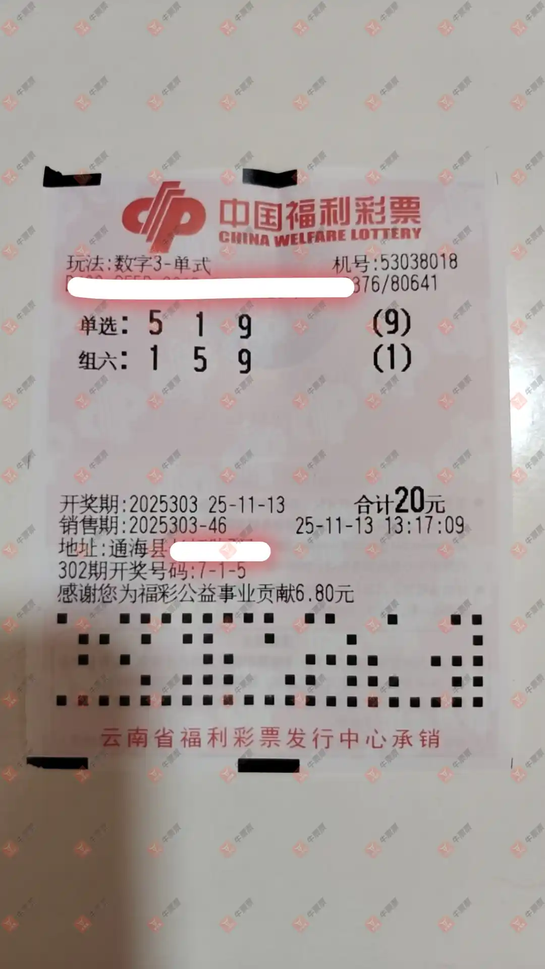 福彩3D 2025303期