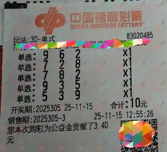 福彩3D 2025305期