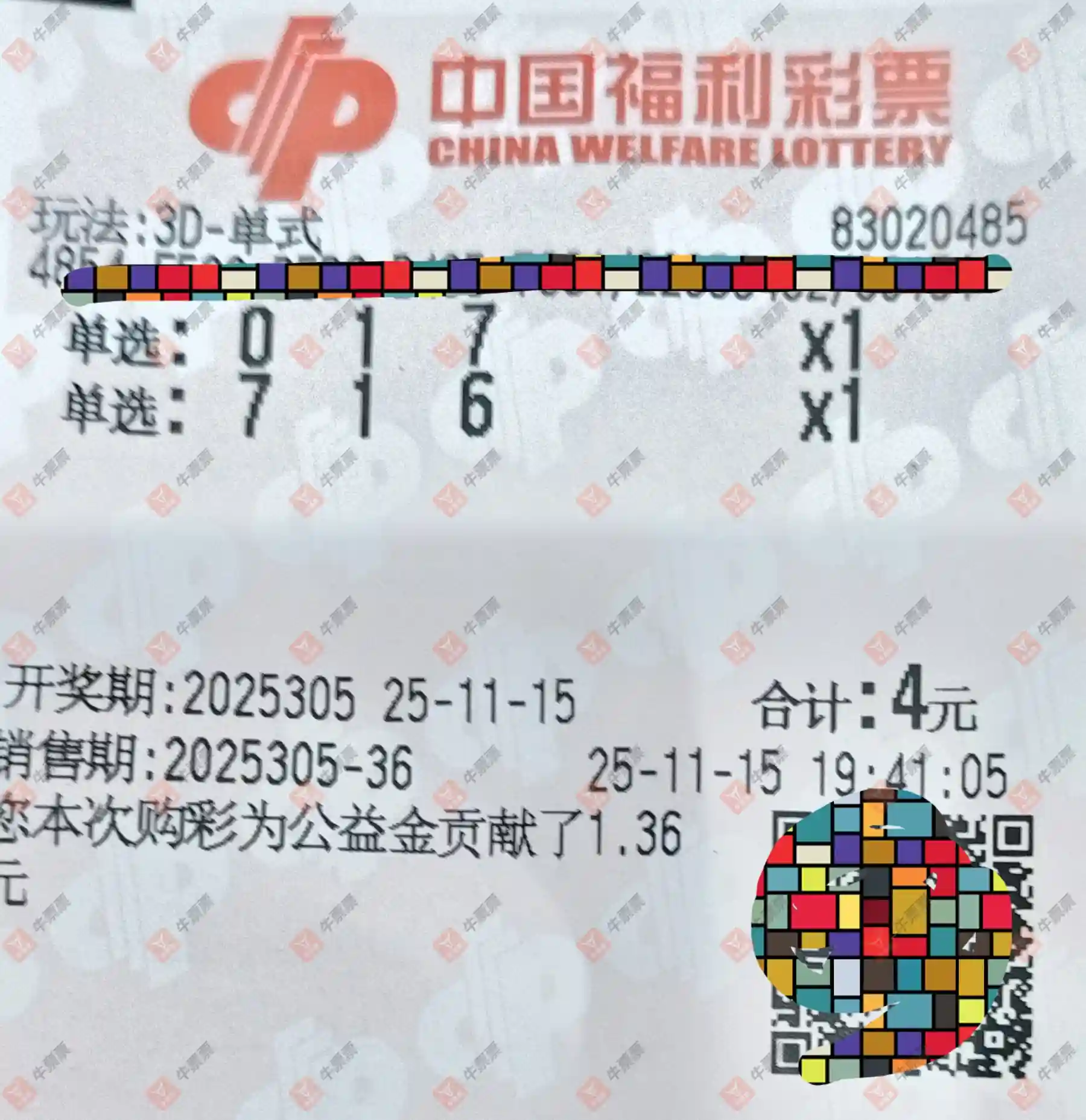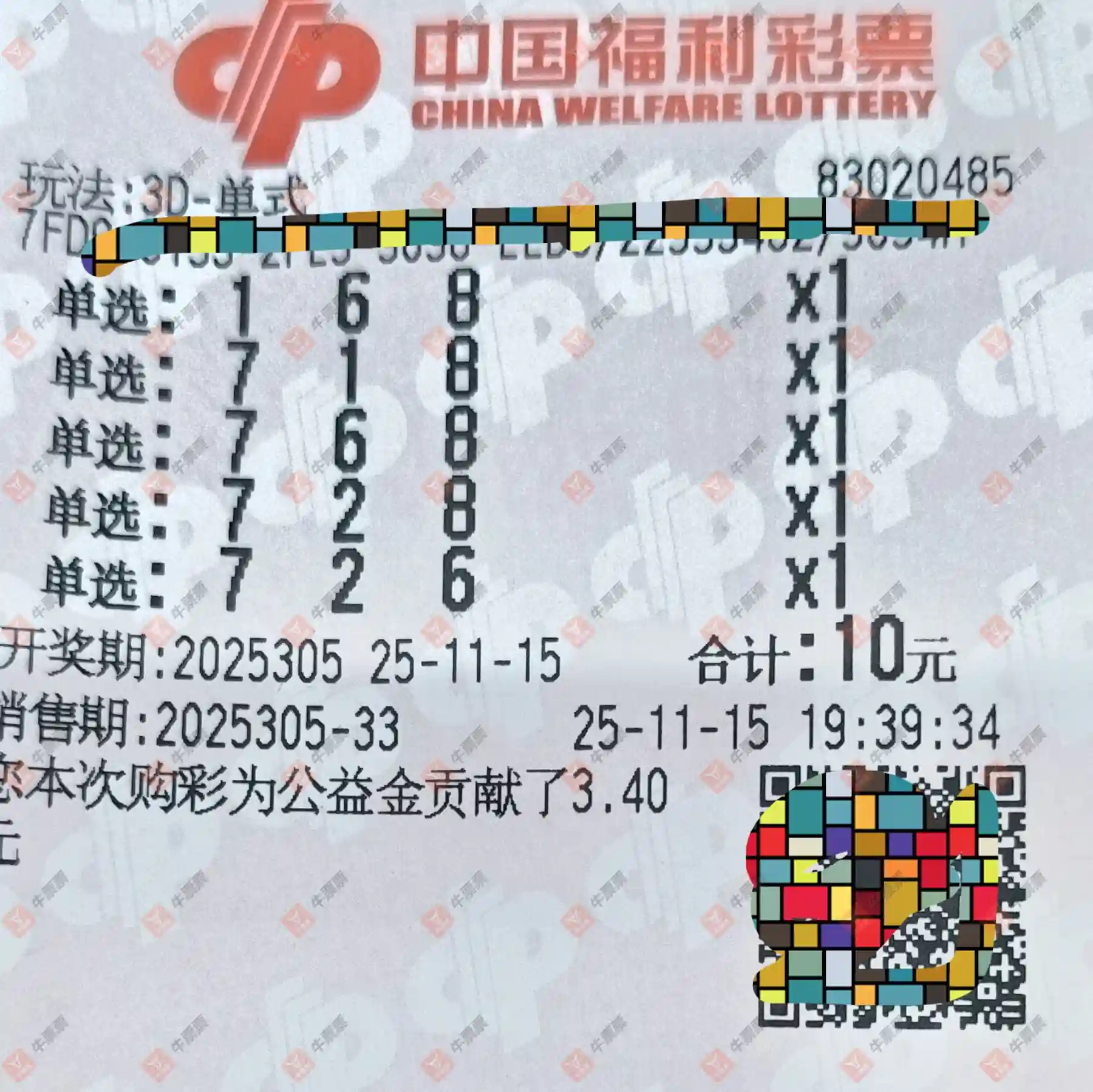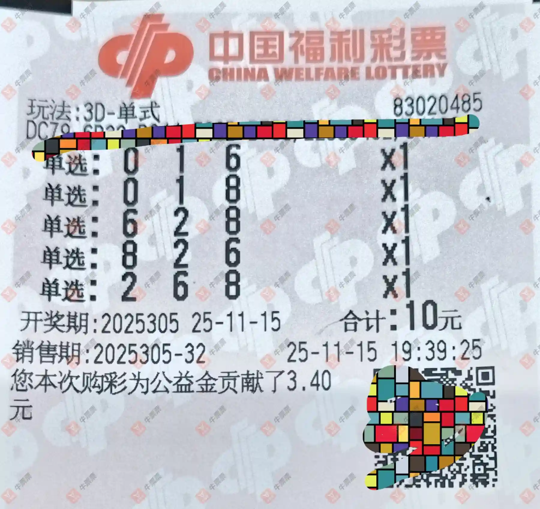 福彩3D 2025305期