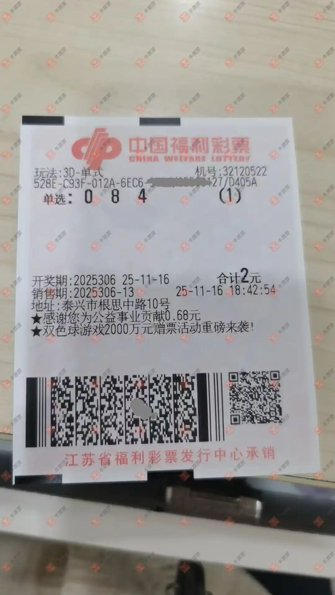 福彩3D 2025306期