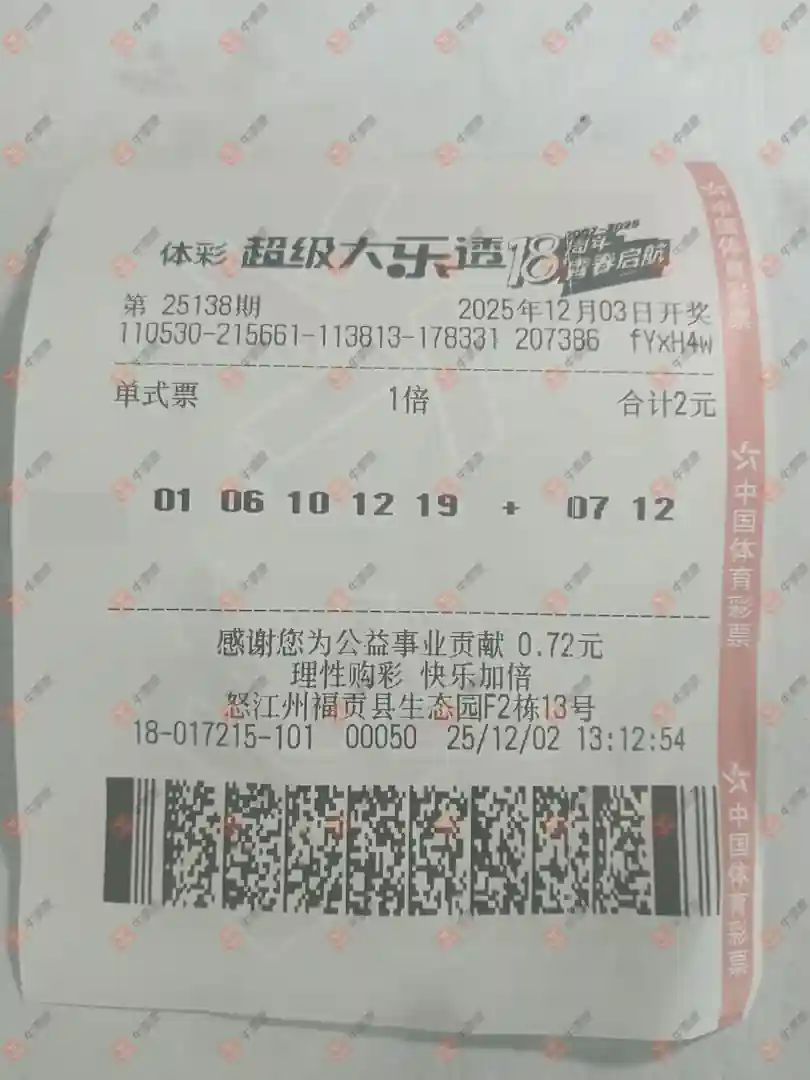 晒中大乐透开机号1 6 10 12 19 后区7 12 大乐透专家精准杀前区五码 10 11 18 24 32后区2码4 8 2025年10月2号