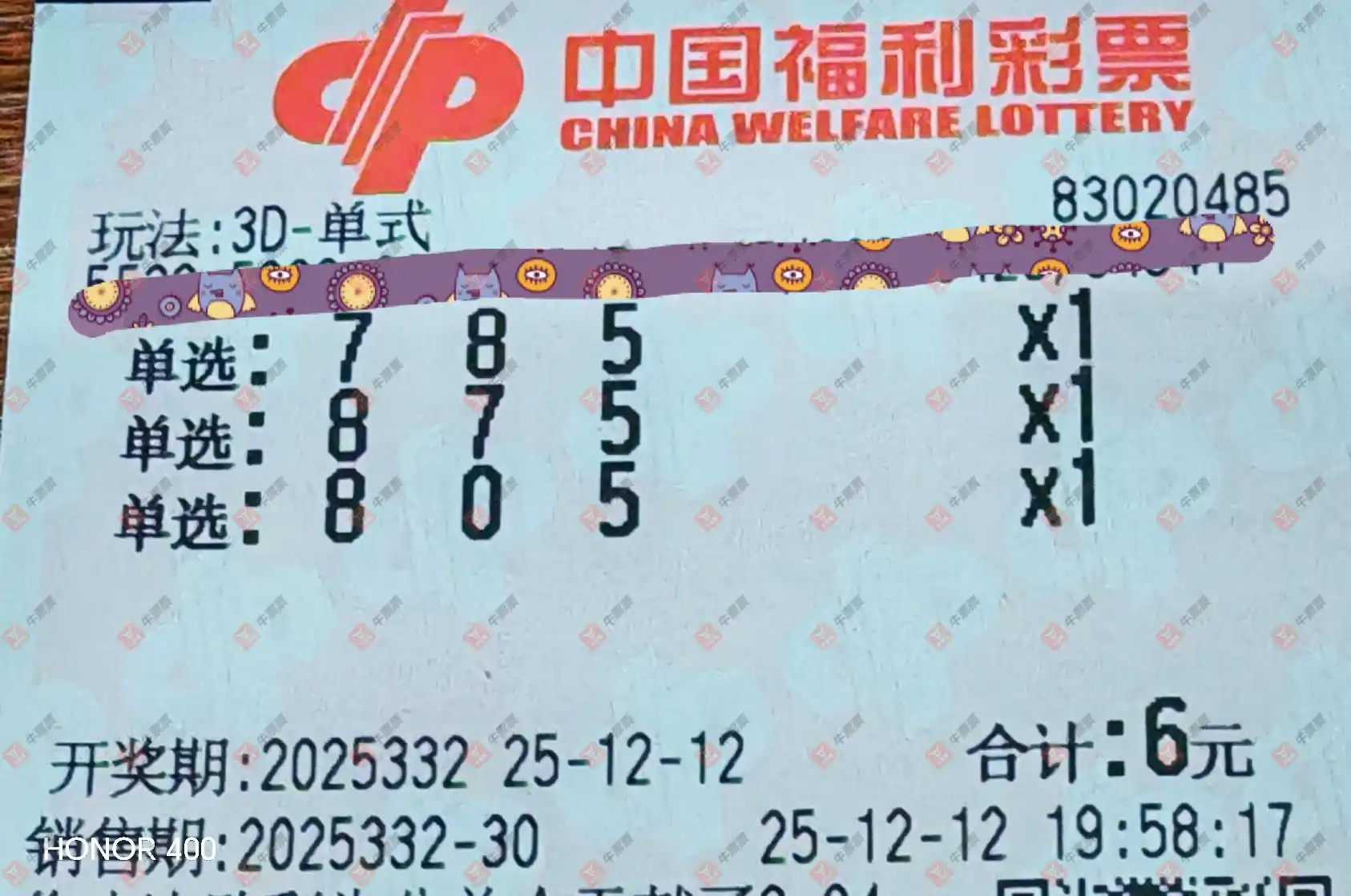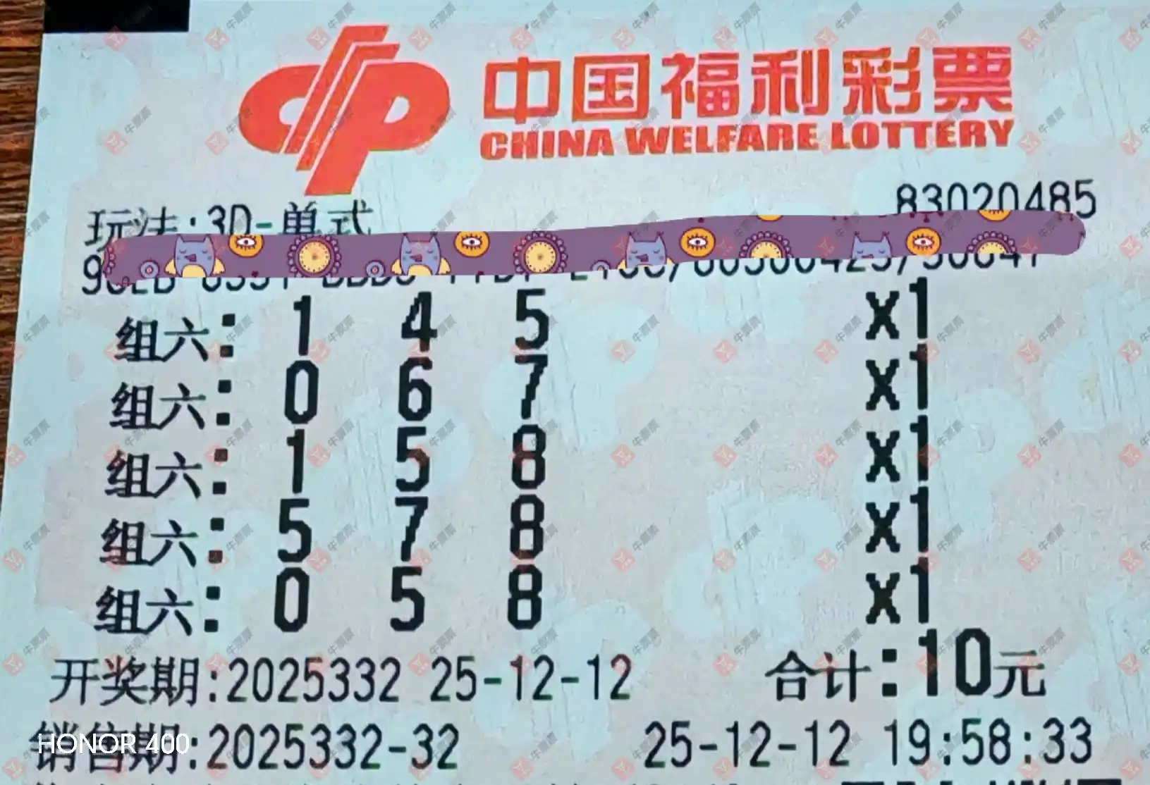 福彩3D 2025332期