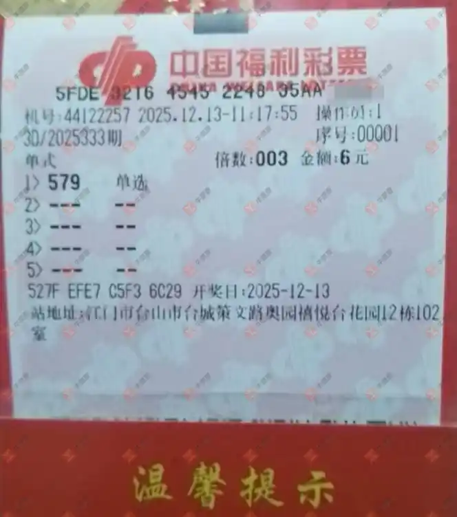 福彩3D 2025333期