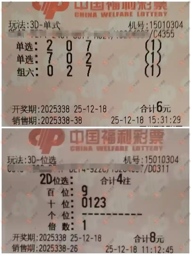 福彩3D 2025338期