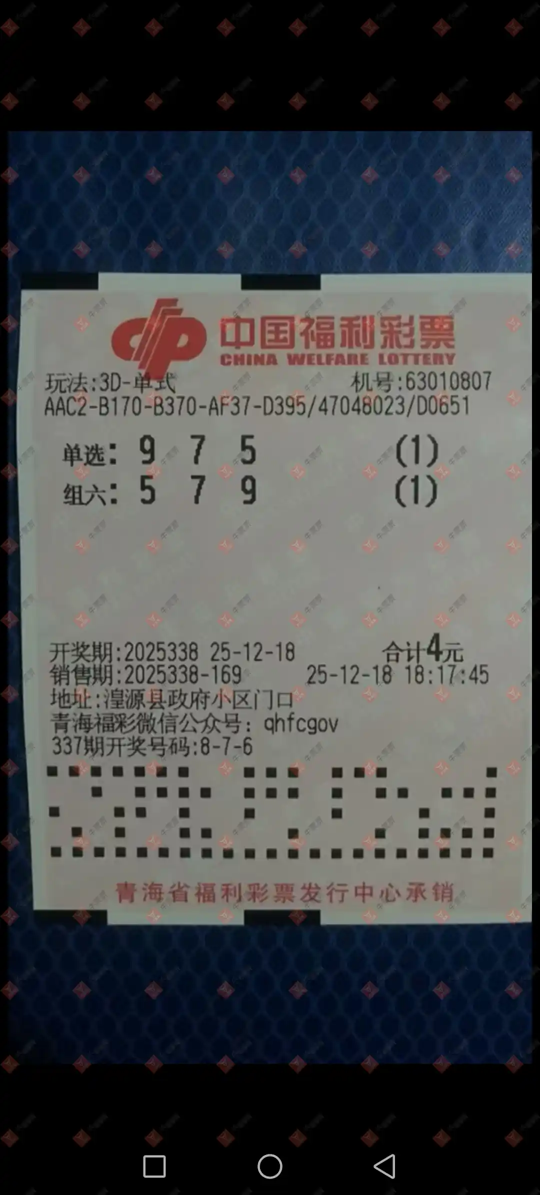 福彩3D 2025338期
