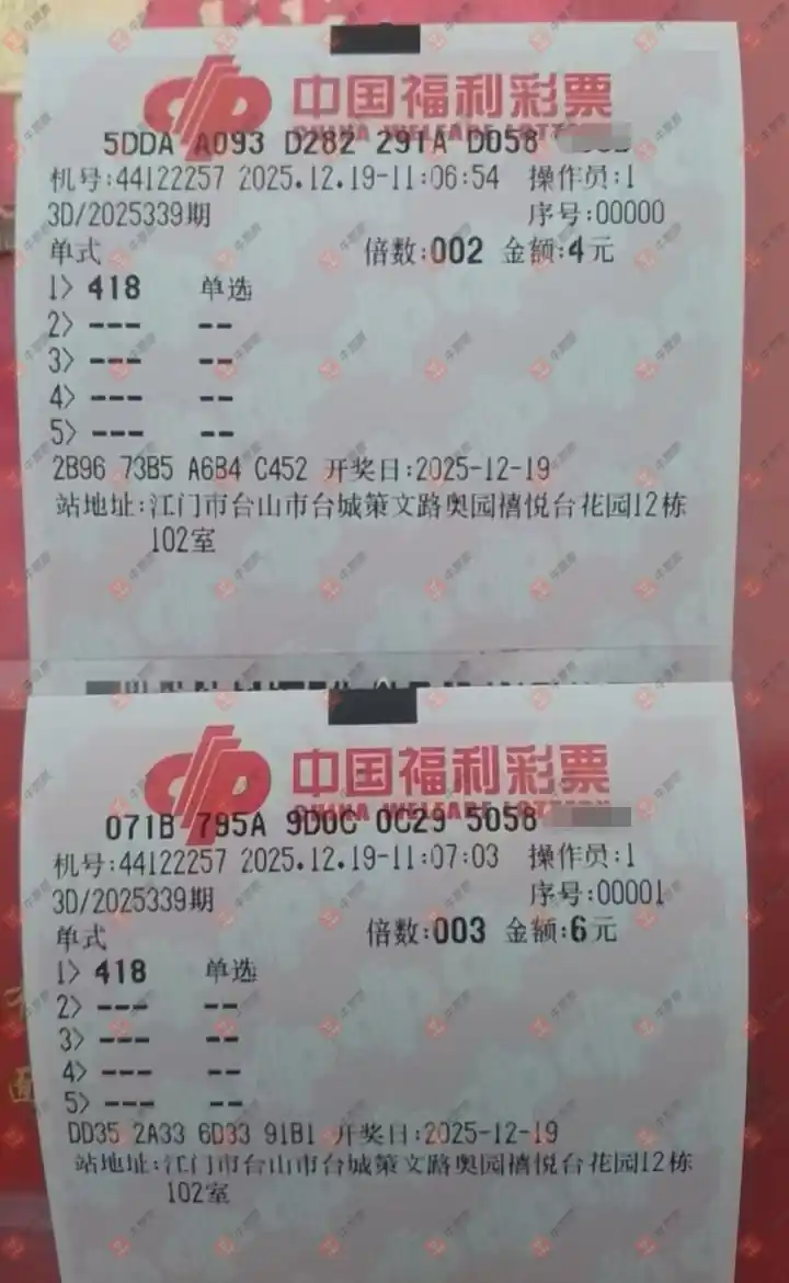 福彩3D 2025339期