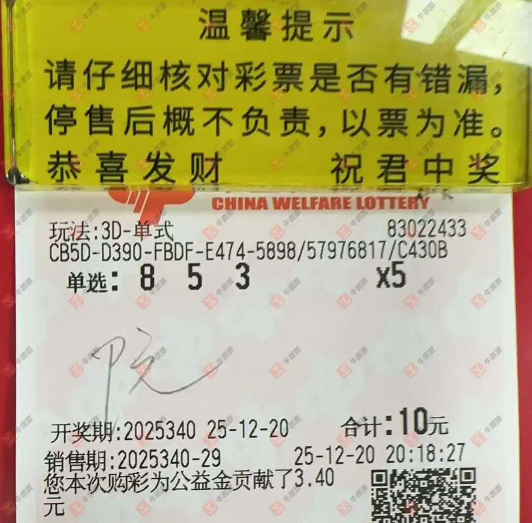福彩3D 2025340期