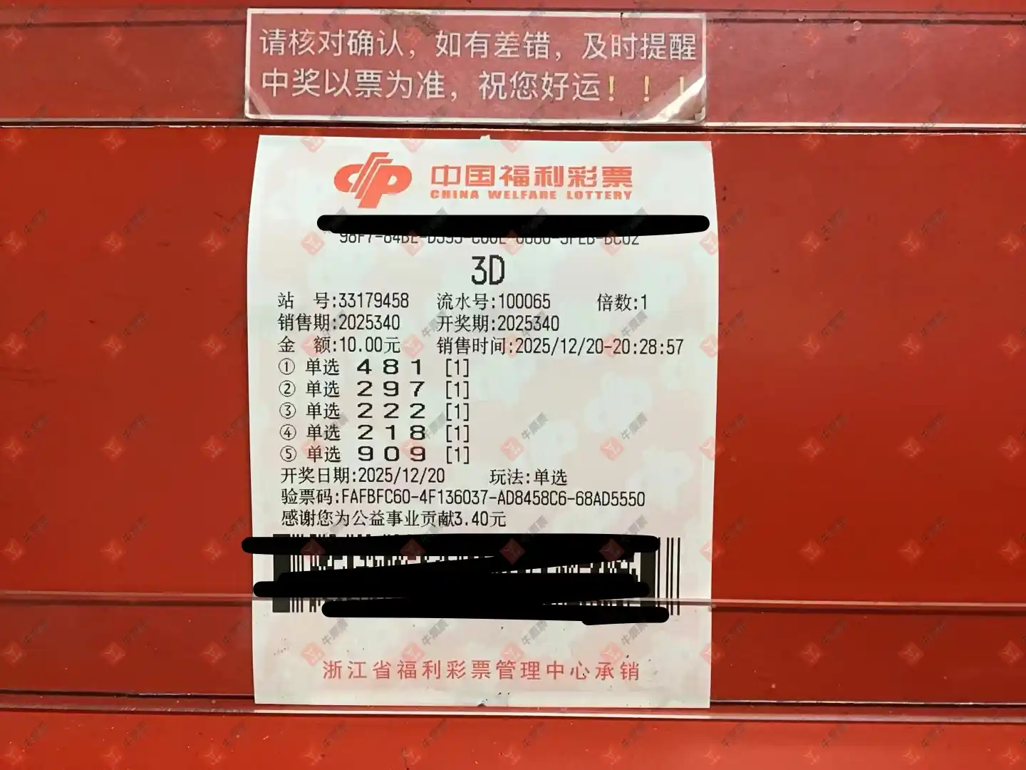 福彩3D 2025340期