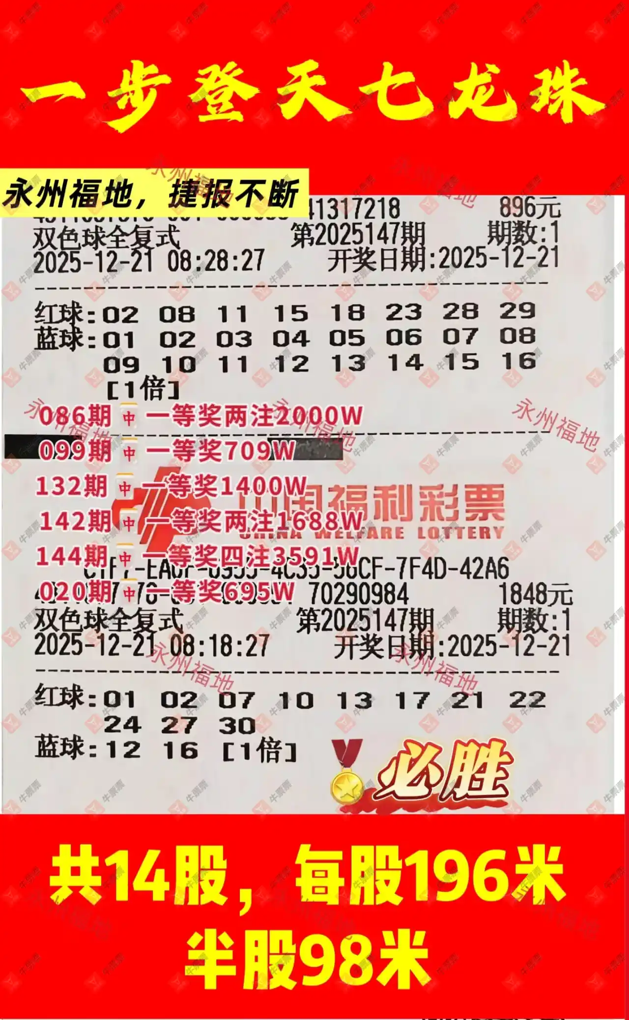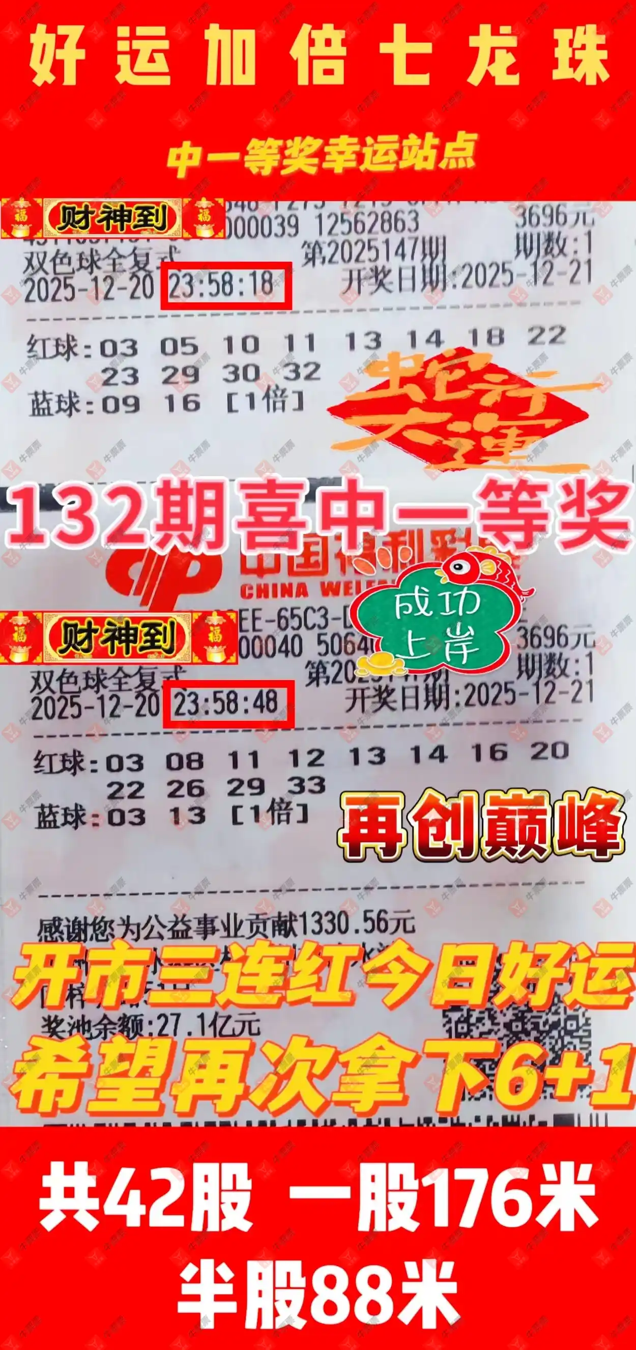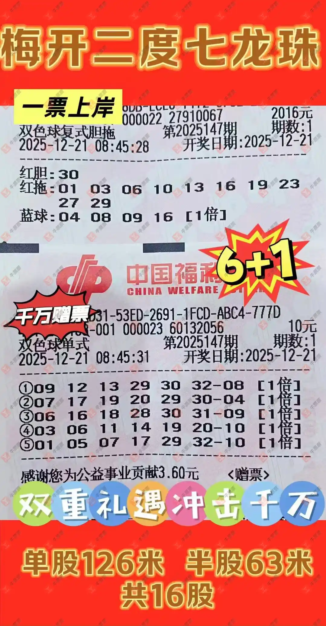 晒中147期双色球合买
