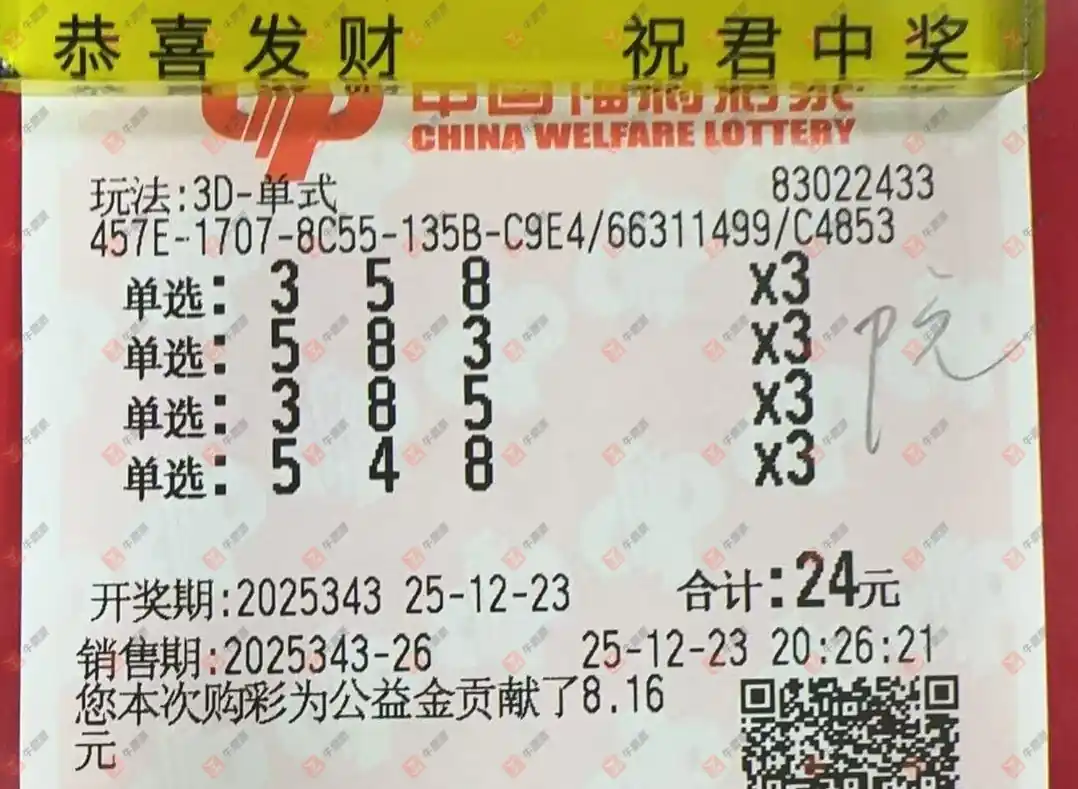 福彩3D 2025343期