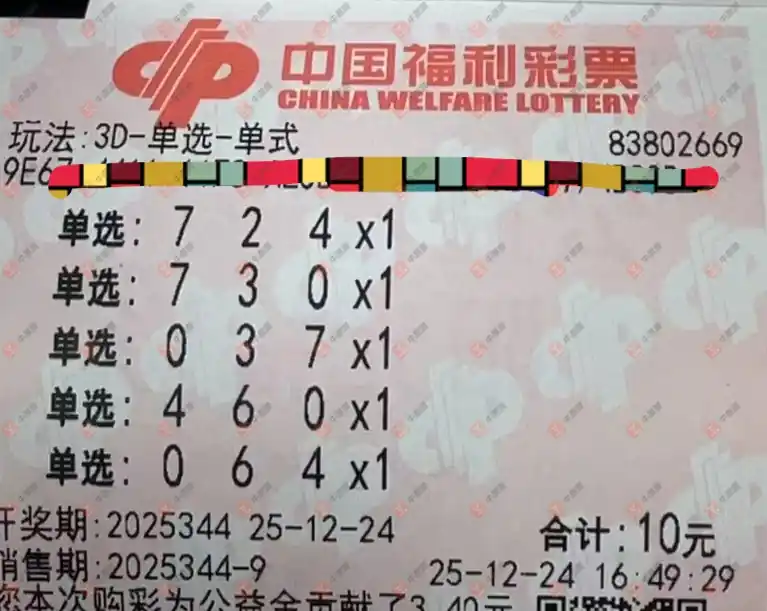 福彩3D 2025344期