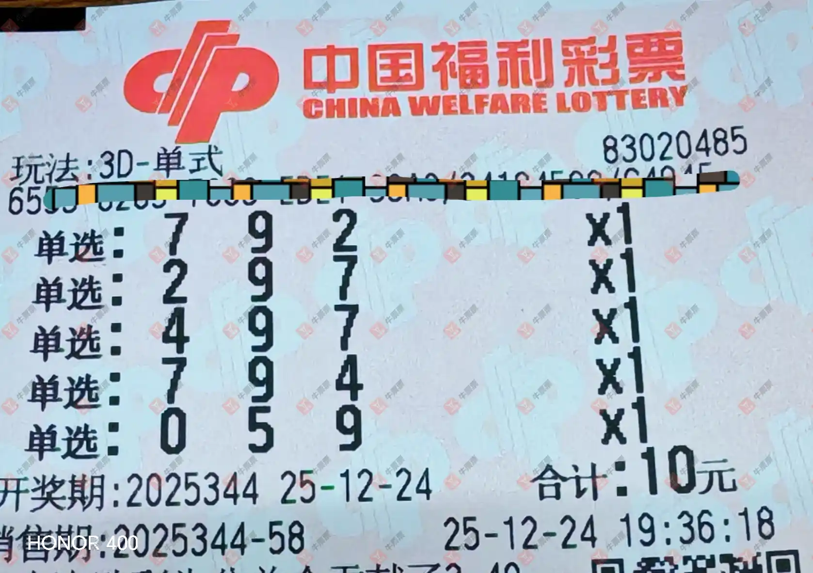 福彩3D 2025344期