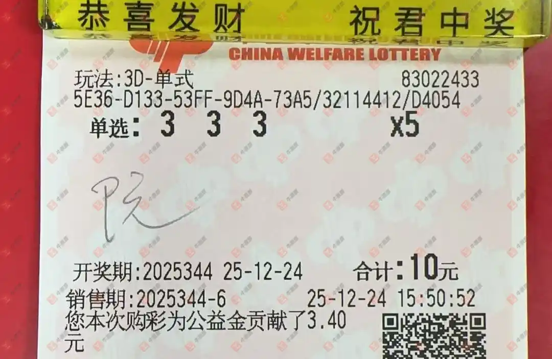 福彩3D 2025344期