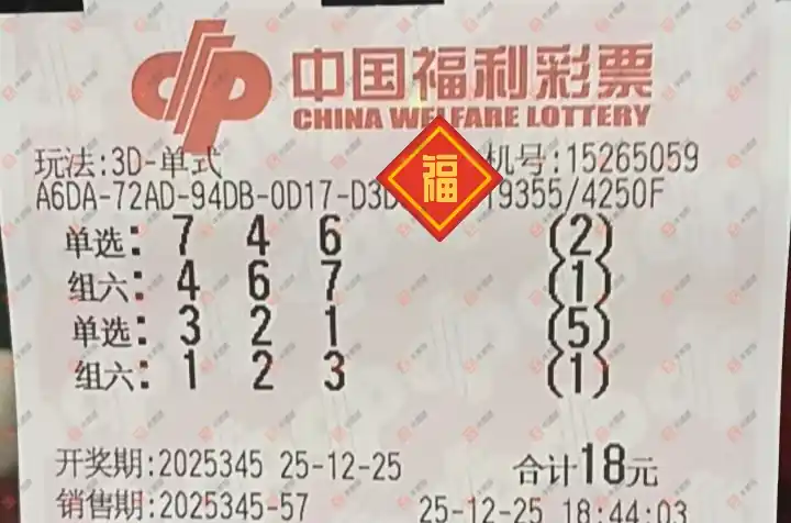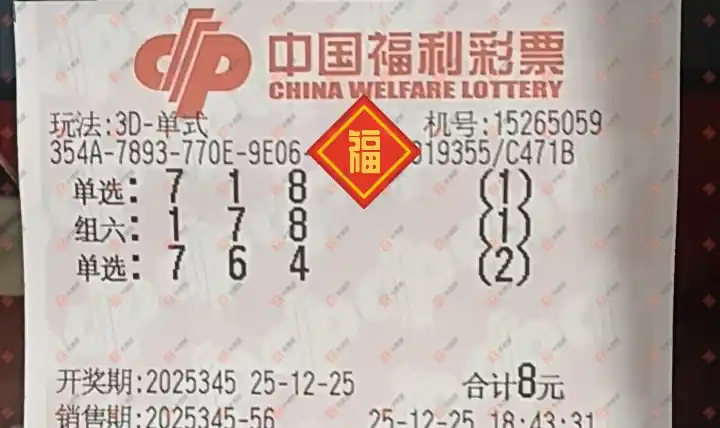 福彩3D 2025345期