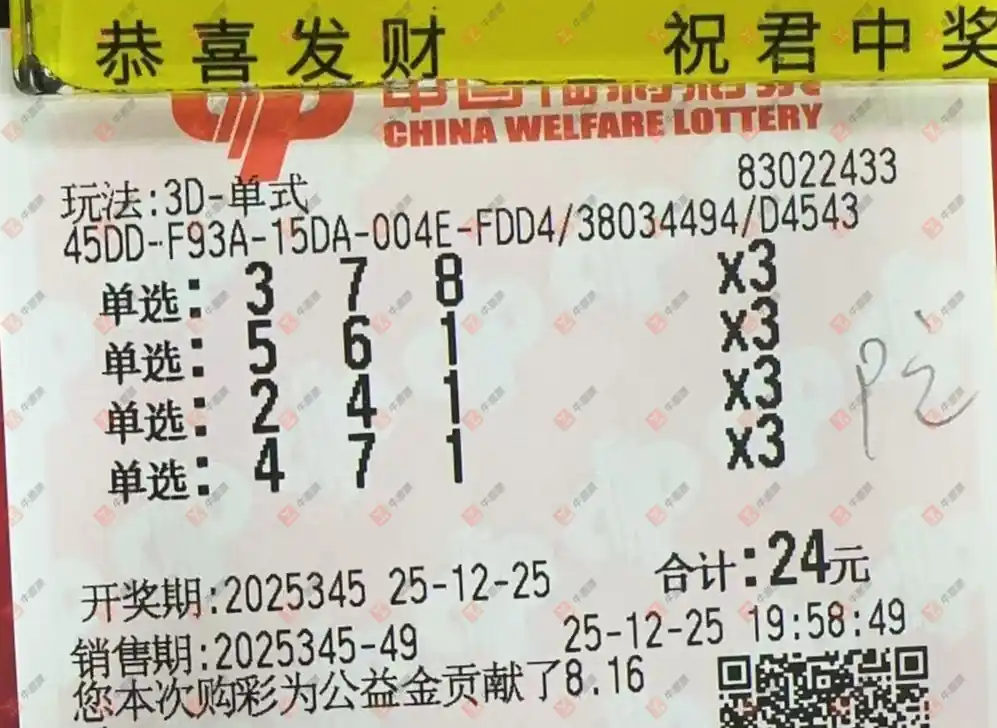 福彩3D 2025345期