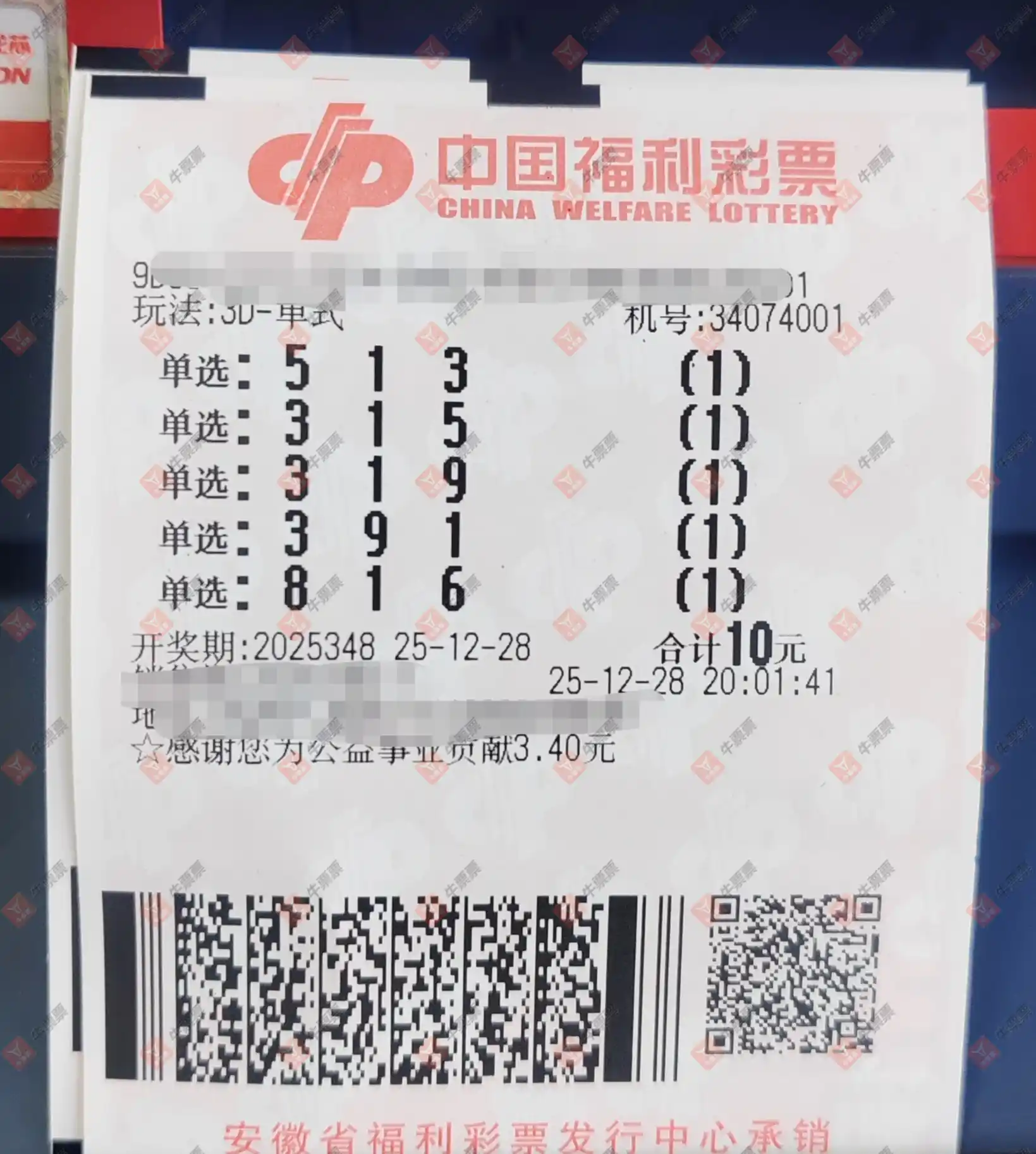 福彩3D 2025348期