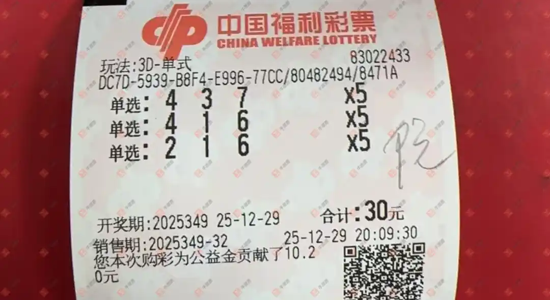 福彩3D 2025349期