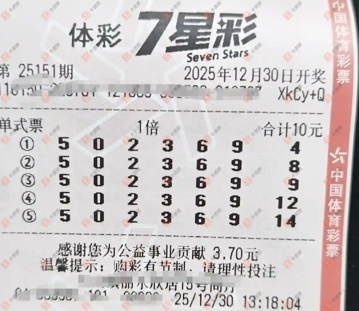 七星彩 2025151期