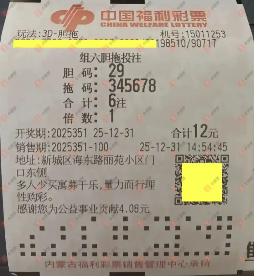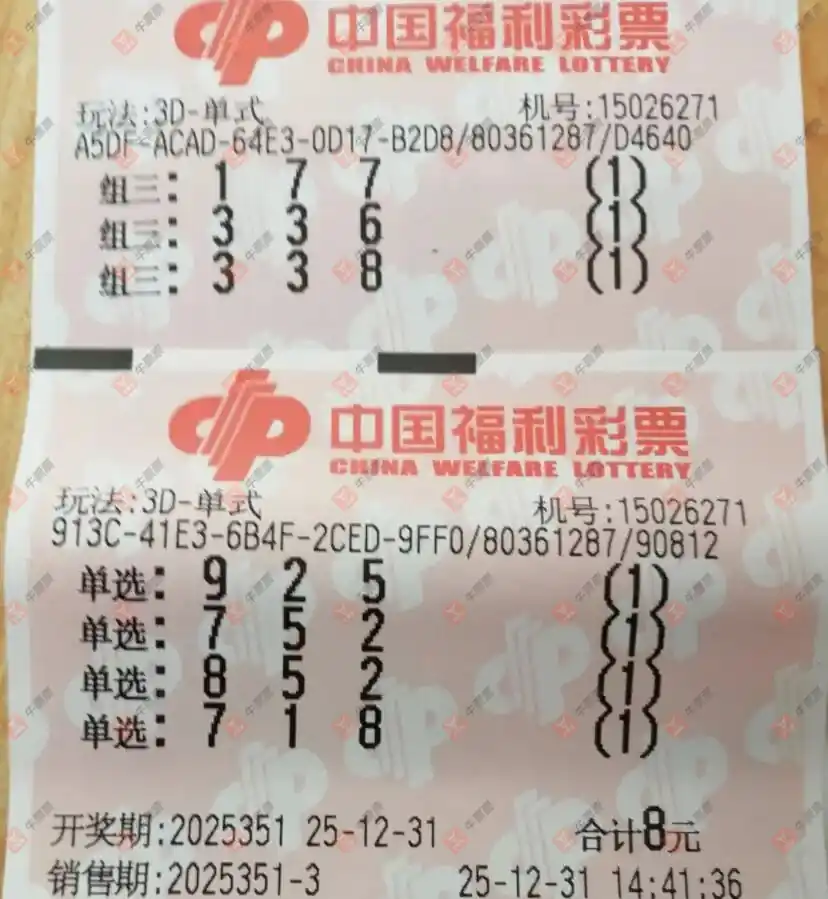 福彩3D 2025351期