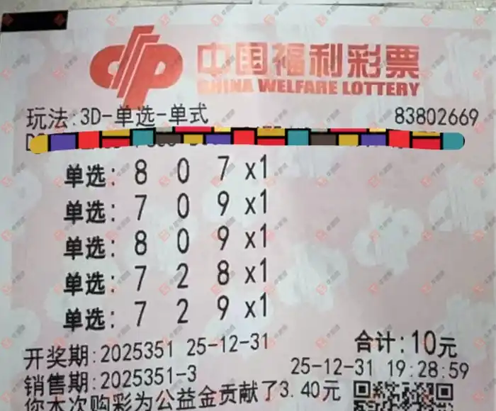 福彩3D 2025351期