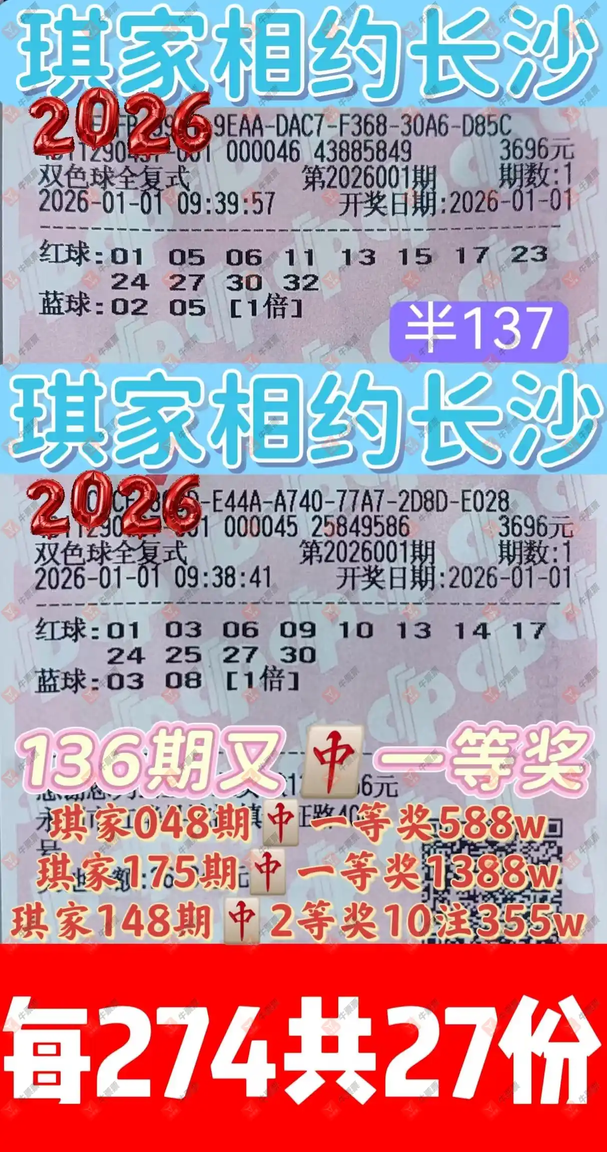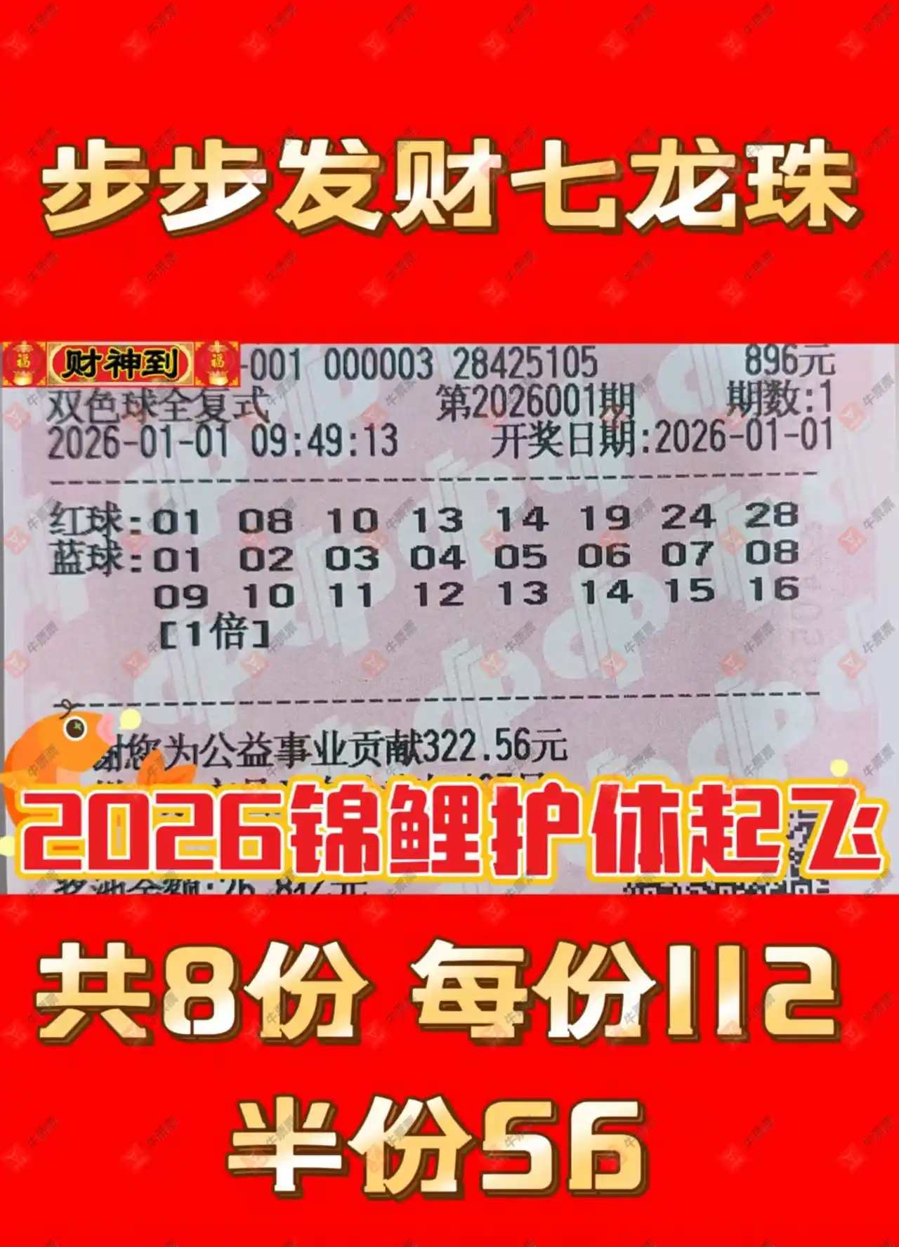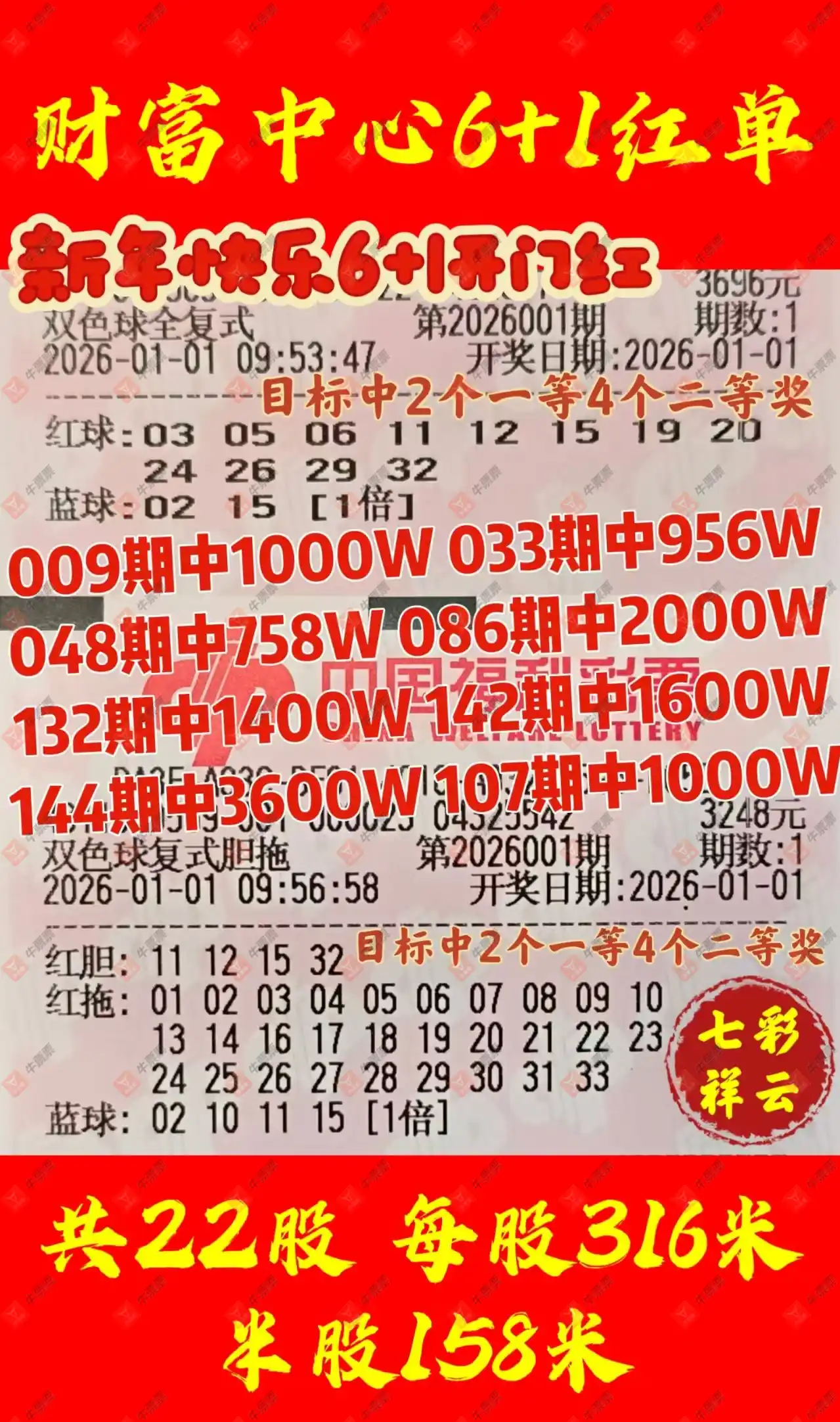 晒中001期双色球合买票